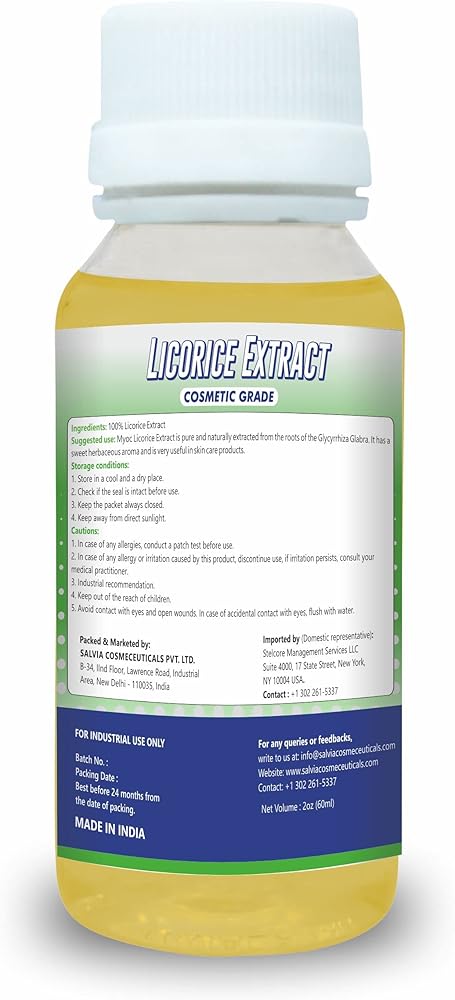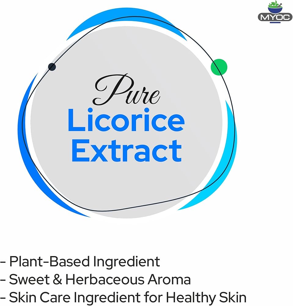 Pure & Natural Licorice Extract: Myoc Licorice Extract liquid is pure and naturally extracted from the roots of the Glycyrrhiza Glabra. It has a sweet herbaceous aroma and is very useful in skin care products.