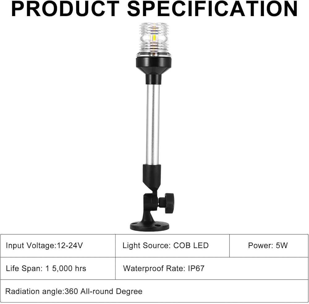 ⛵️[Weatherproof and Durable] - Our stern light boasts an IP66 waterproof rating, capable of withstanding harsh marine conditions. Whether you're cruising on a lake or exploring the open sea, this light will continue to work reliably, ensuring you remain safe and visible at all times.