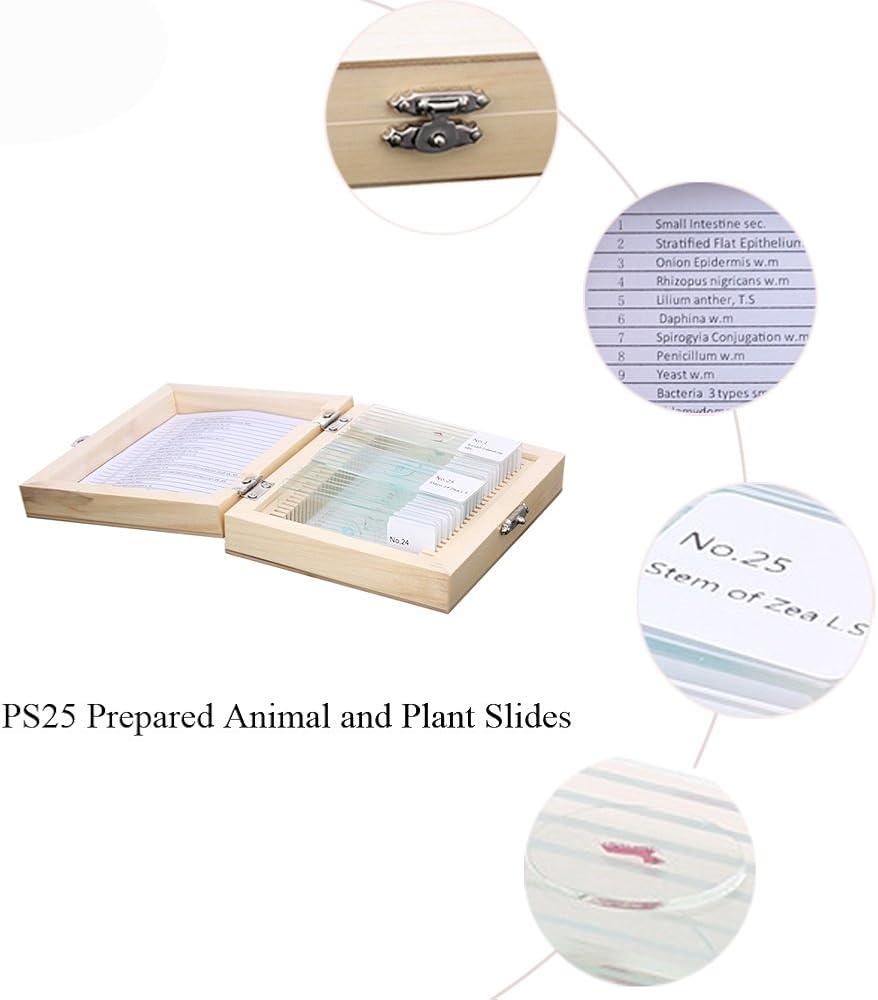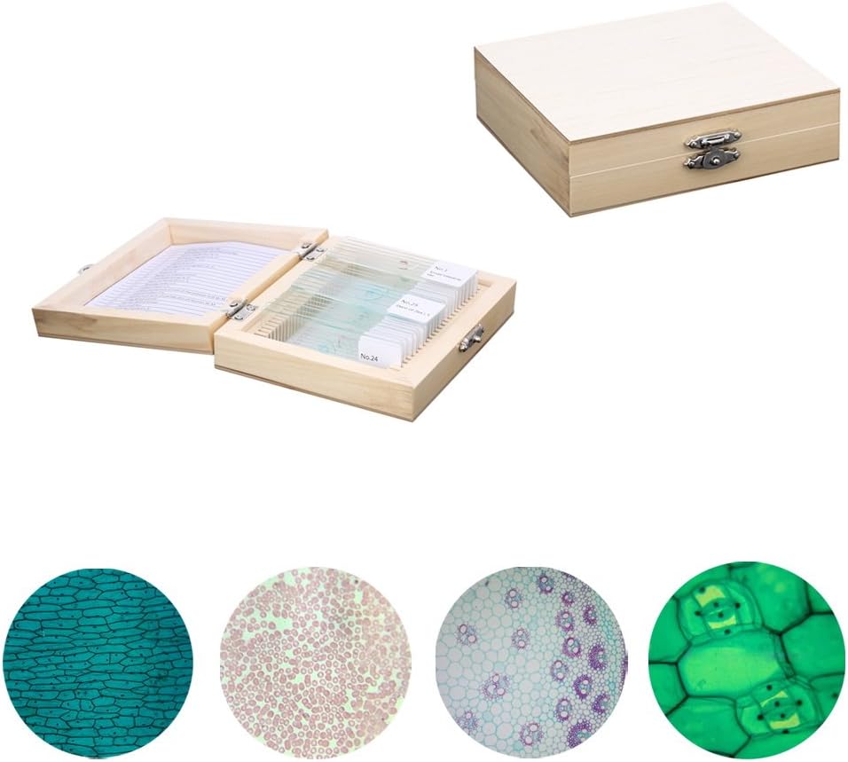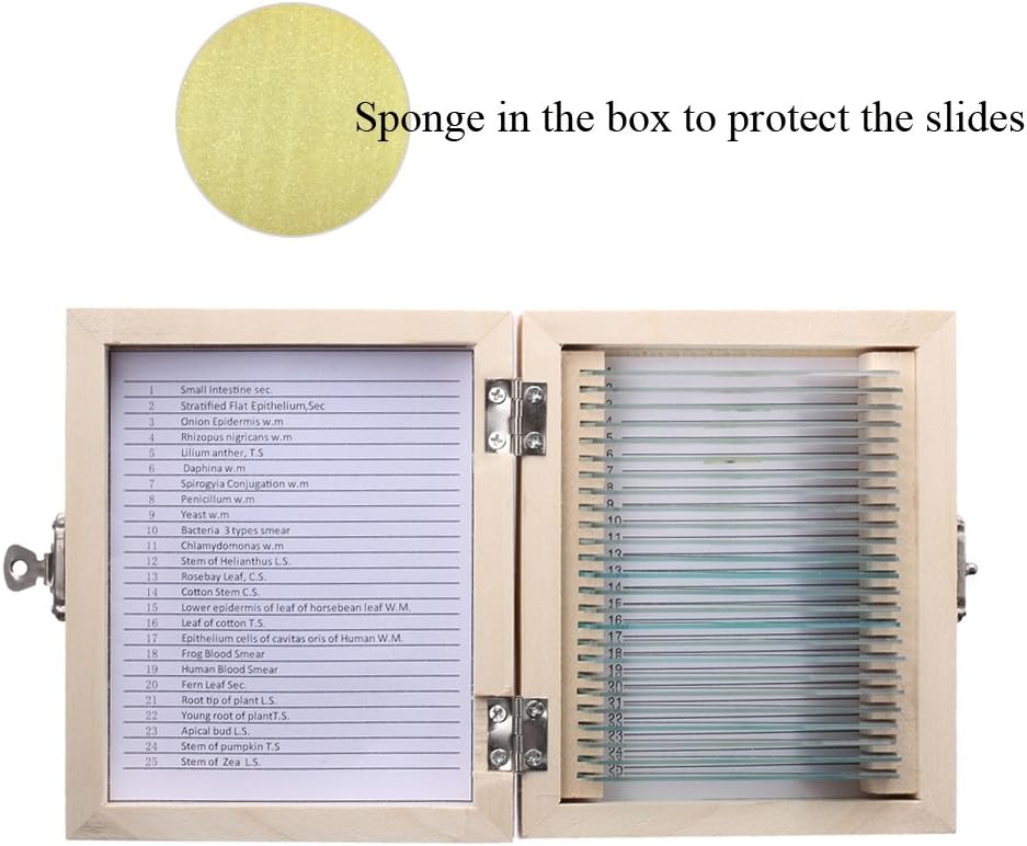 Each cell slice is affixed with a label, which is easy to look for. The slice are stored in a wooden box to prevent breakage. They are suitable for students study in biology lessons, laboratory scientific research, as well as the development of personal interests.