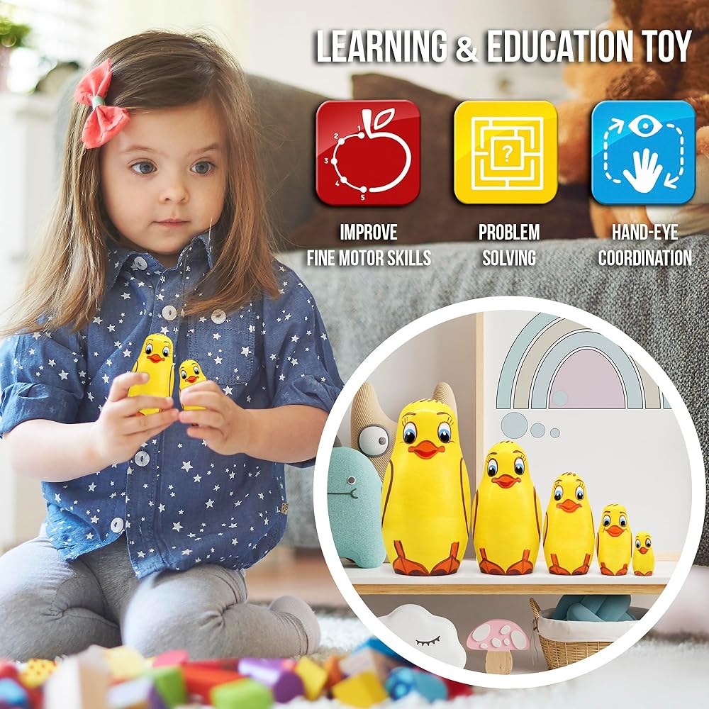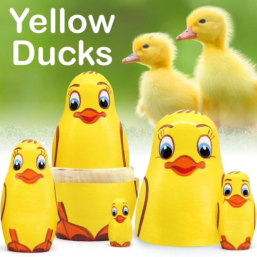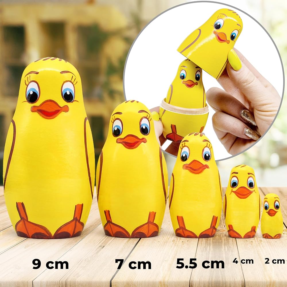 مجموعة دمى التعشيش لصغار البط 5 قطع - البطة الأم الخشبية وفراخ البط - دمى ماتريوشكا