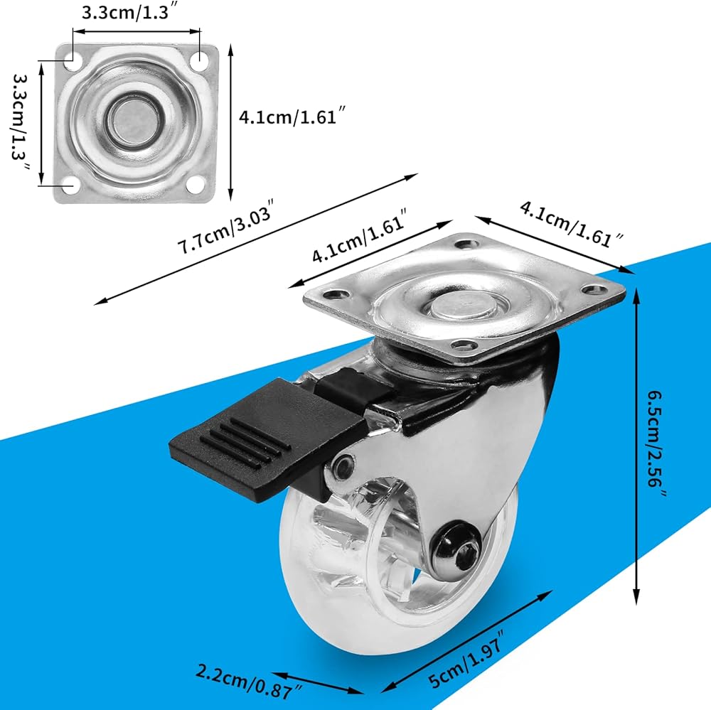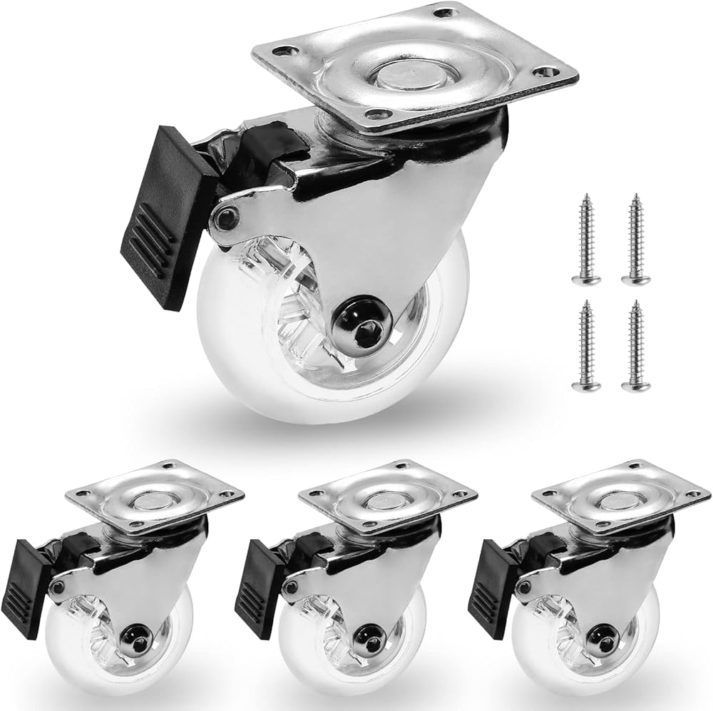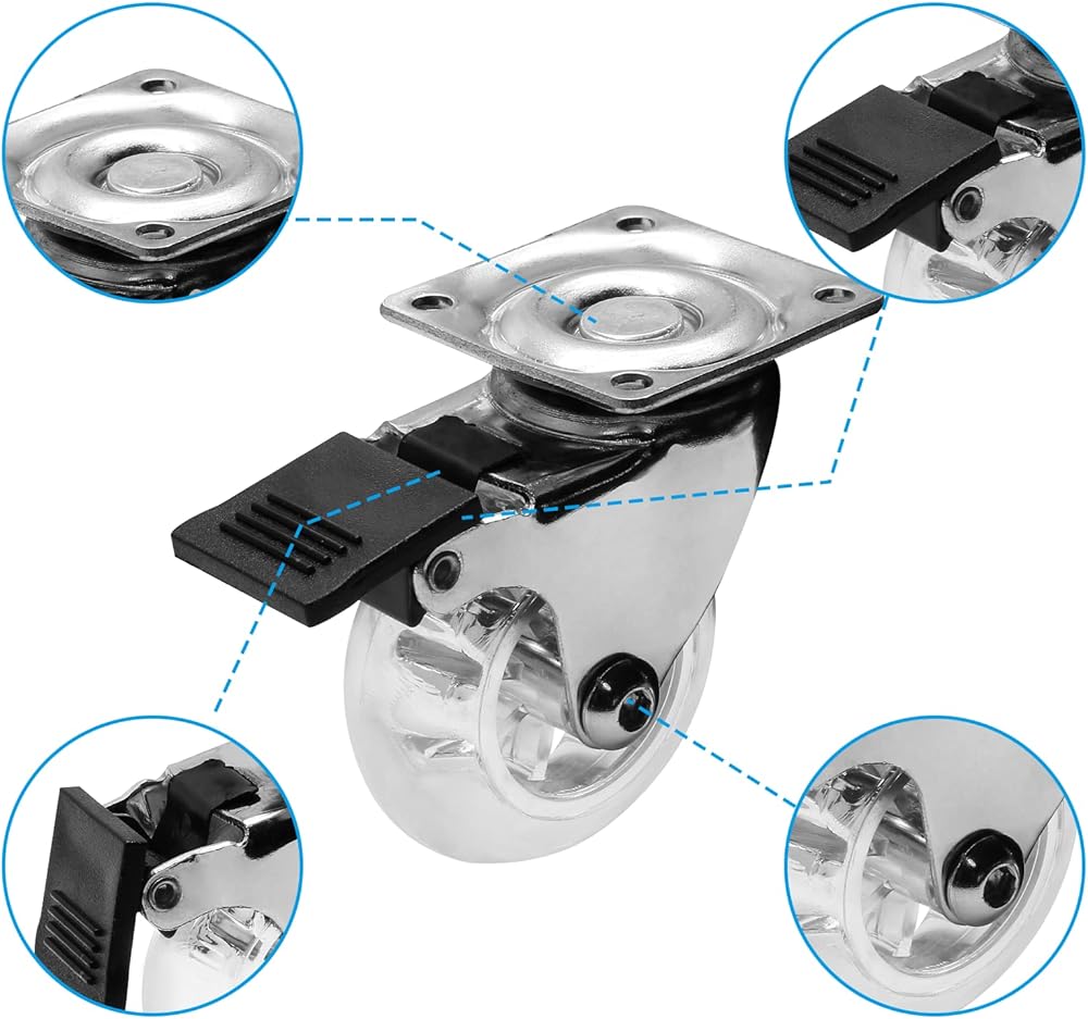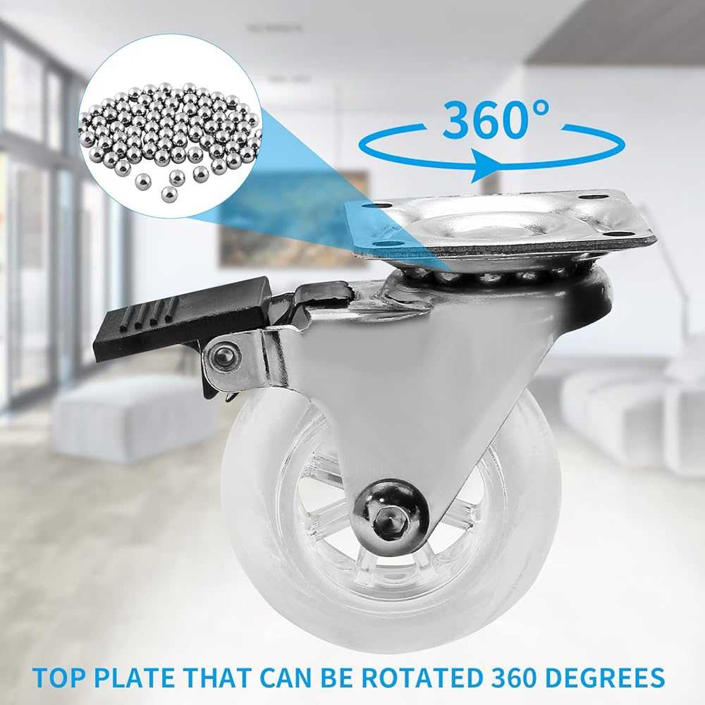 Cionyce 4 PCS Clear Crystal Casters 2 inch Rolling Wheels Swivel Plate Castor for Furniture,Carpet,Chair Legs,360 Degree Casters with Screws