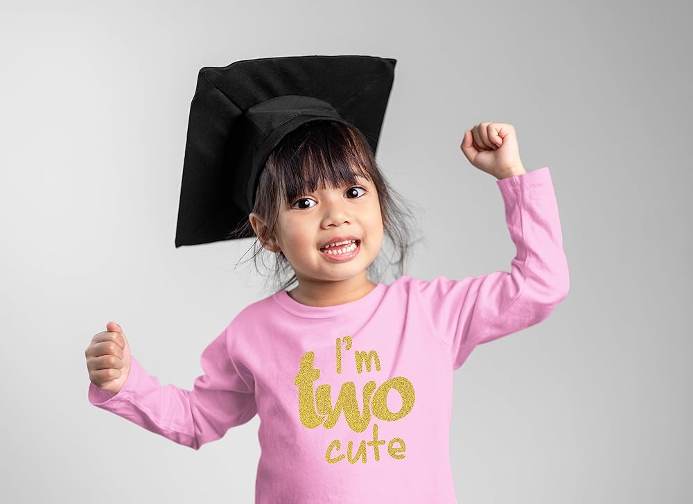 This Im two cute and one. 1st and 2nd birthday shirt is great quality and fit. The design is adjusted according to the shirt size. This 1 year and 2 year old birthday outfit girl is designed for age appropriate fit, so no need to buy big The first and second birthday outfit girl shirt is 100 percent Cotton (except Charcoal Black and Blue, which is 95 percent cotton and 5 percent polyester). All of our products are machine washable. Perfect gift for 1st and 2nd birthday party, one and two year old birthday girl gifts, 1st and 2nd birthday outfits for toddler girls Satisfaction Guaranteed: We provide 100 percent Money Back Guarantee. We offer Free Replacement or Full Refund if you are not fully satisfied with our ‘Im two cute and two wild' shirt