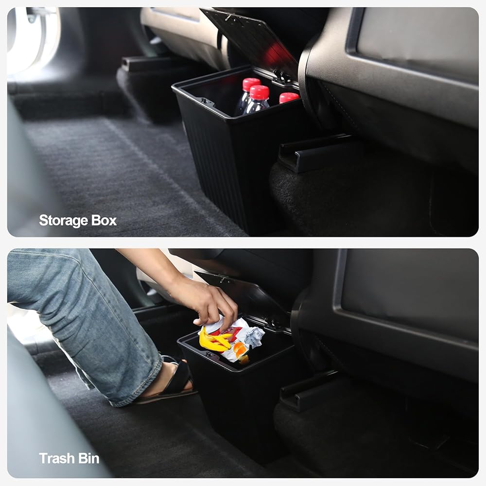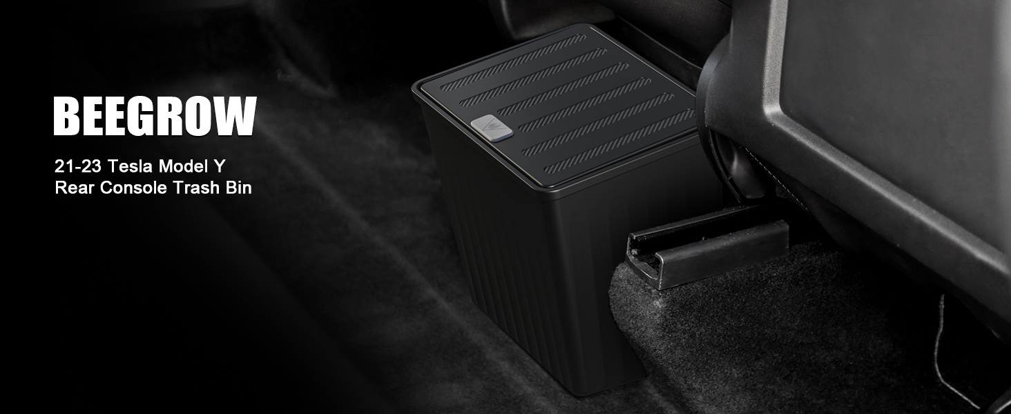 سلة المهملات الخلفية من BEEGROW لسيارة Tesla Model Y 2023 2022 2021، صندوق تخزين للمقعد الخلفي بسعة أكبر وتصميم غطاء يمكن فتحه، ملحقات داخلية من طراز Tesla Model Y
