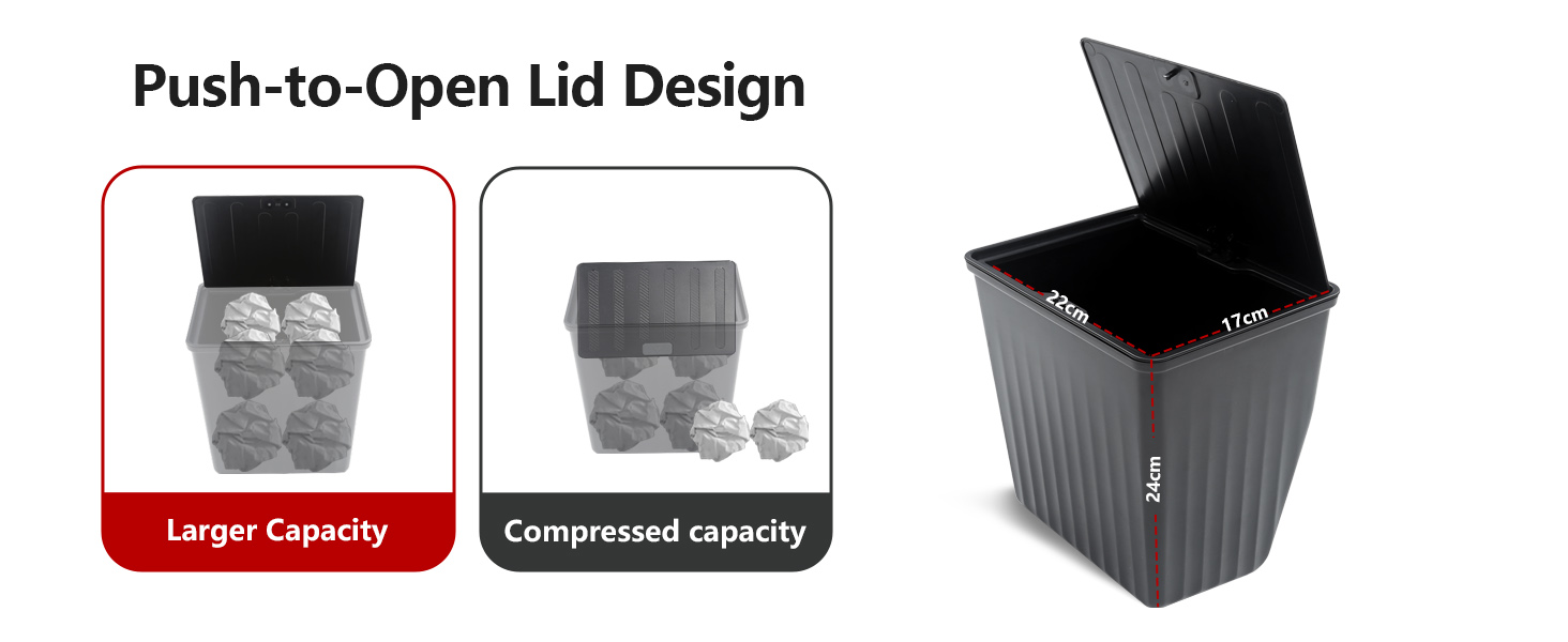 الضغط للفتح بيد واحدة: يتم فتحه بسهولة بضغطة واحدة، حيث يتم فتح التصميم الفريد لمنتجنا تلقائيًا، مما يجعله بعيدًا عن بدائل رفع الغطاء اليدوية. استمتع بالوصول المريح والسهل.
