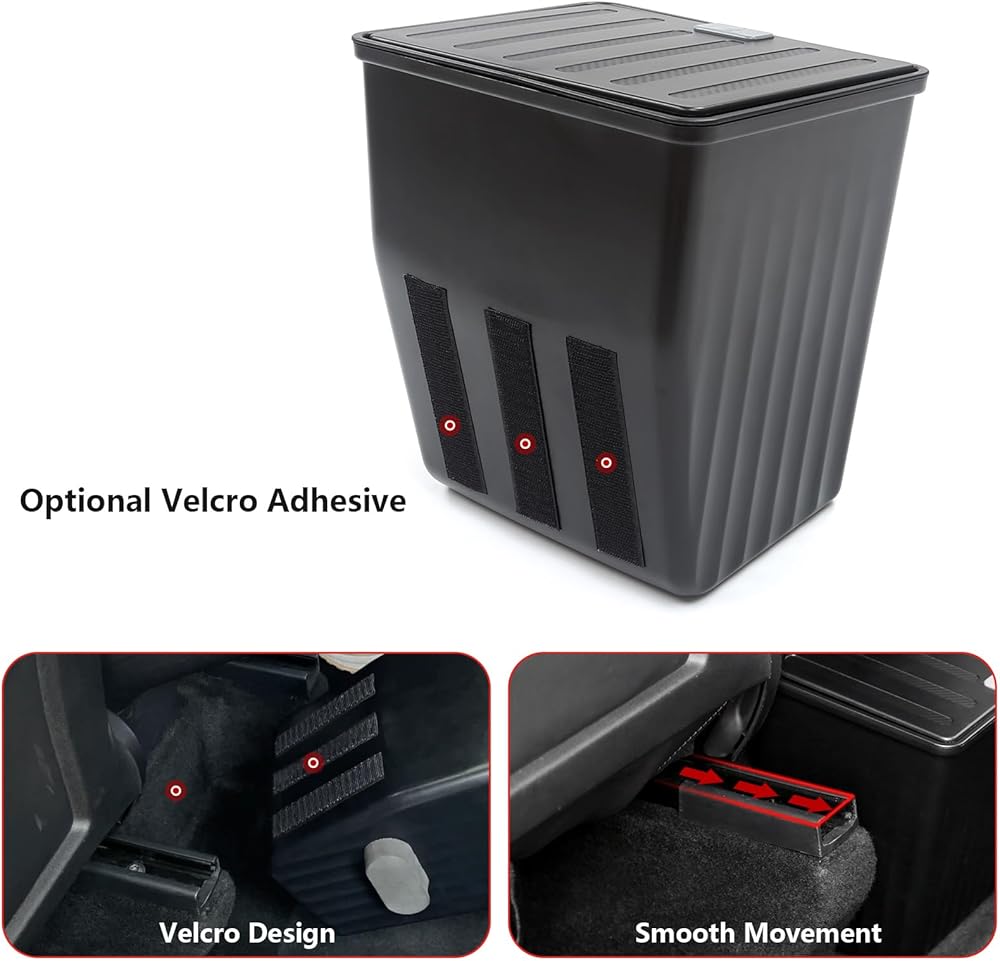 هادئ ومستقر: يتم ربط صندوق التخزين بأمان بأشرطة فيلكرو ووسادات إسفنجية، مما يوفر ثباتًا خاليًا من الضوضاء. فهو يحافظ على مساحة الأرجل للركاب الخلفيين وحركة المقعد غير المقيدة.