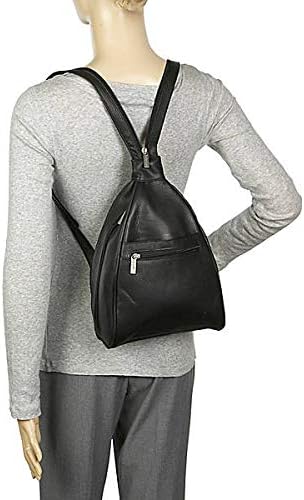 BP-61-TN color: Tan features: Convertible single or double strap. Vertical zip for side entry. -Front zip and slip pockets. Interior zip pocket. Constructed of full grain Vacquetta cowhide leather. Product type: Sling backpacks. Material: Leather. Pattern: Solid. Age: -Adults. Dimensions: Overall height, top to bottom: -13". Overall width: Side to side: 11". Overall depth front to back: 4.5". Overall product weight: 1 lbs.