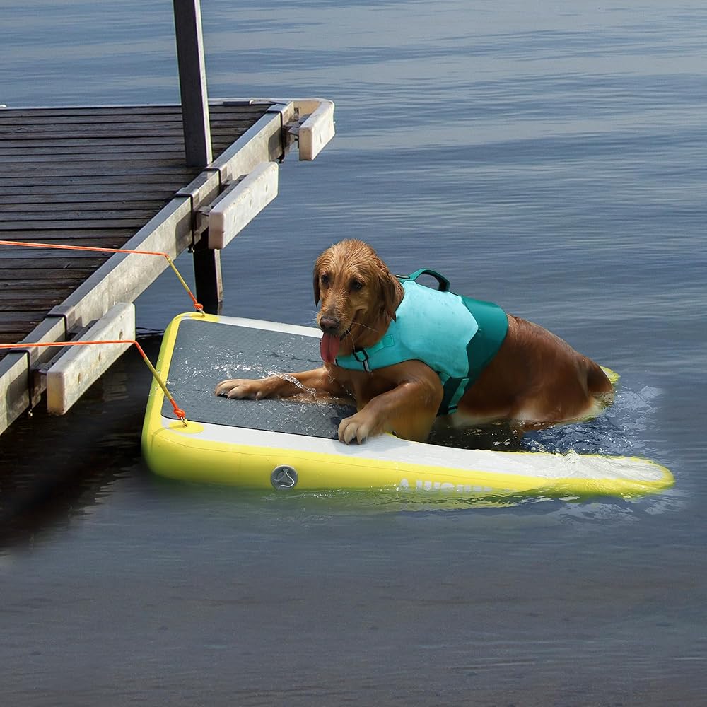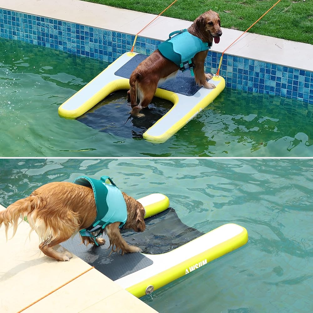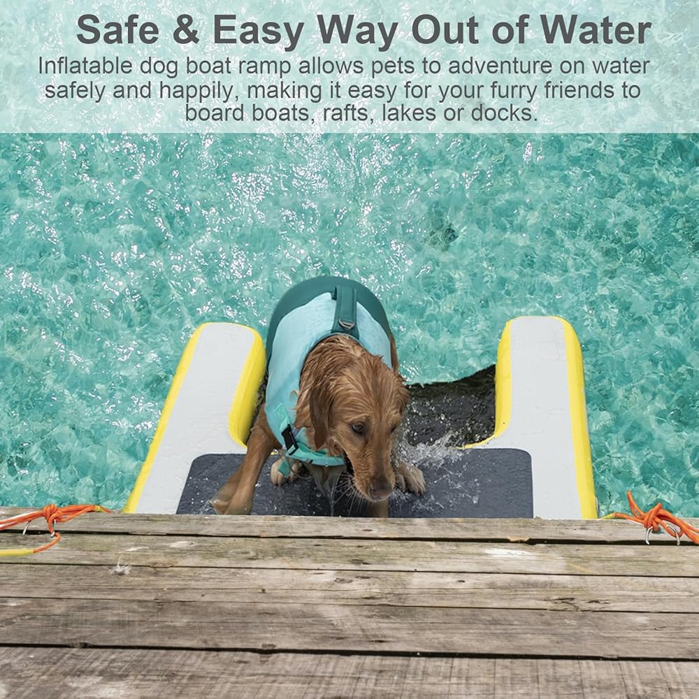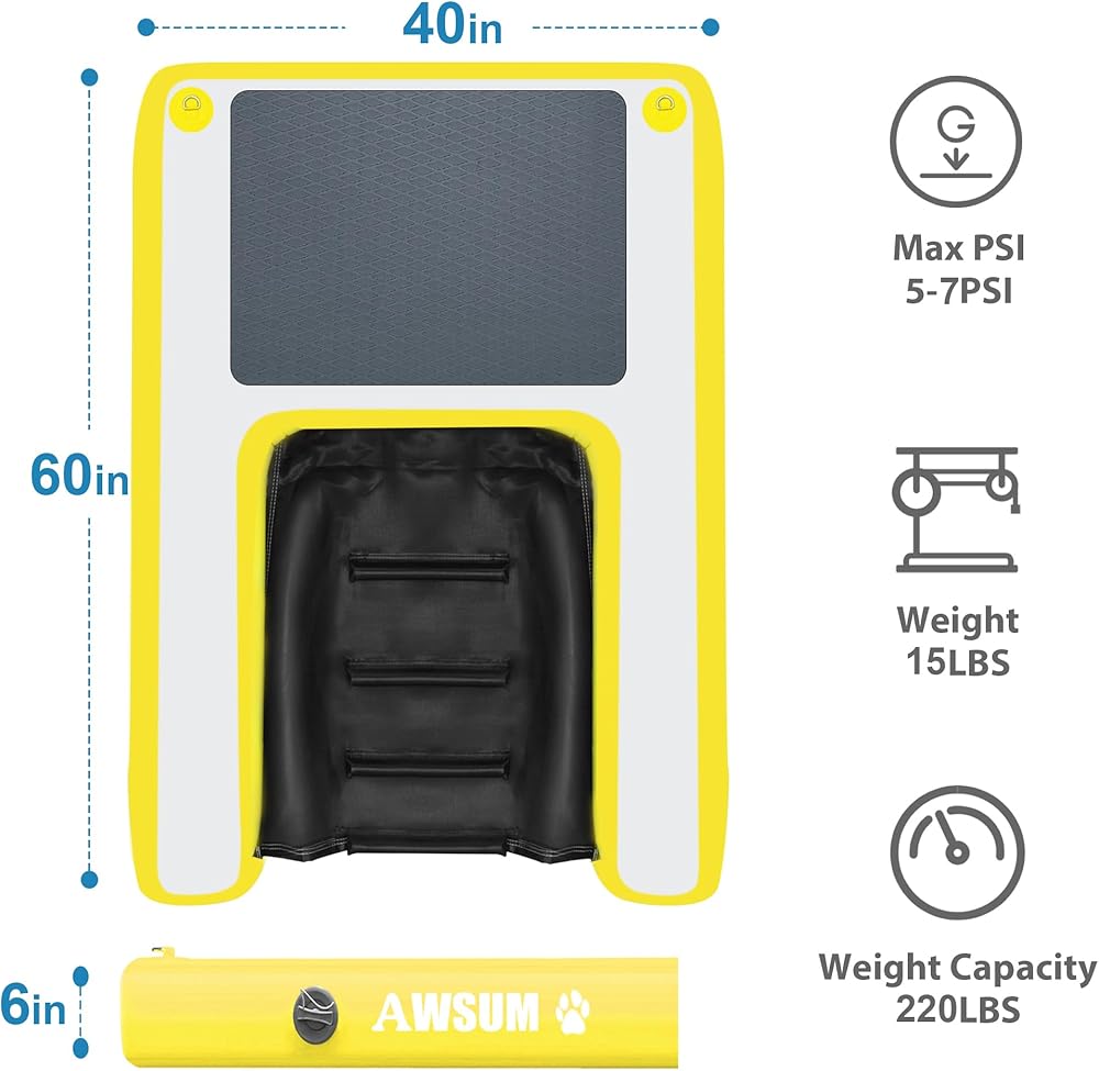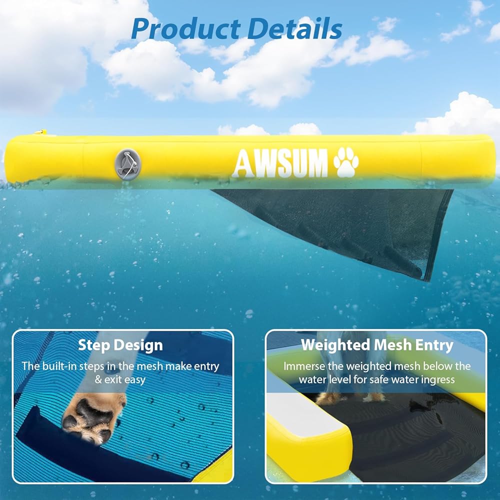 منحدر مائي للكلاب قابل للنفخ من AWSUM، سلالم عائمة كبيرة جدًا للكلاب تصل إلى 220 رطلًا للكلاب على درجات سلم الماء لحمام السباحة والبحيرة والقوارب والرصيف، مع وسادة مضادة للانزلاق