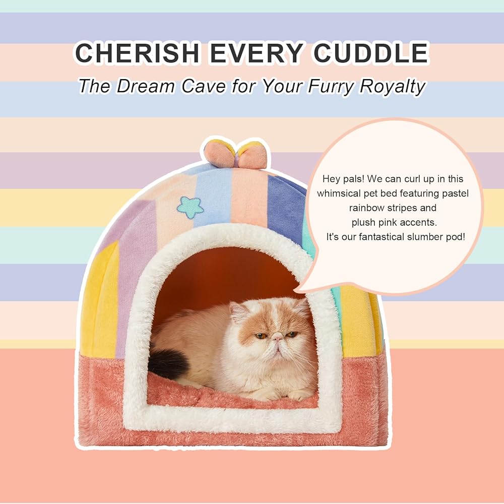 【الكهف والهدوء】يمنح أبعاد سرير القطط اللطيف حيوانك الأليف مخبأً خاصًا ويخلق شعورًا لطيفًا بالأمان، ويلبي طبيعة الحيوانات الأليفة. بيت القطط الخاص بنا يغطي حيوانك الأليف، ويخفف من القلق، ويوفر راحة لا مثيل لها.