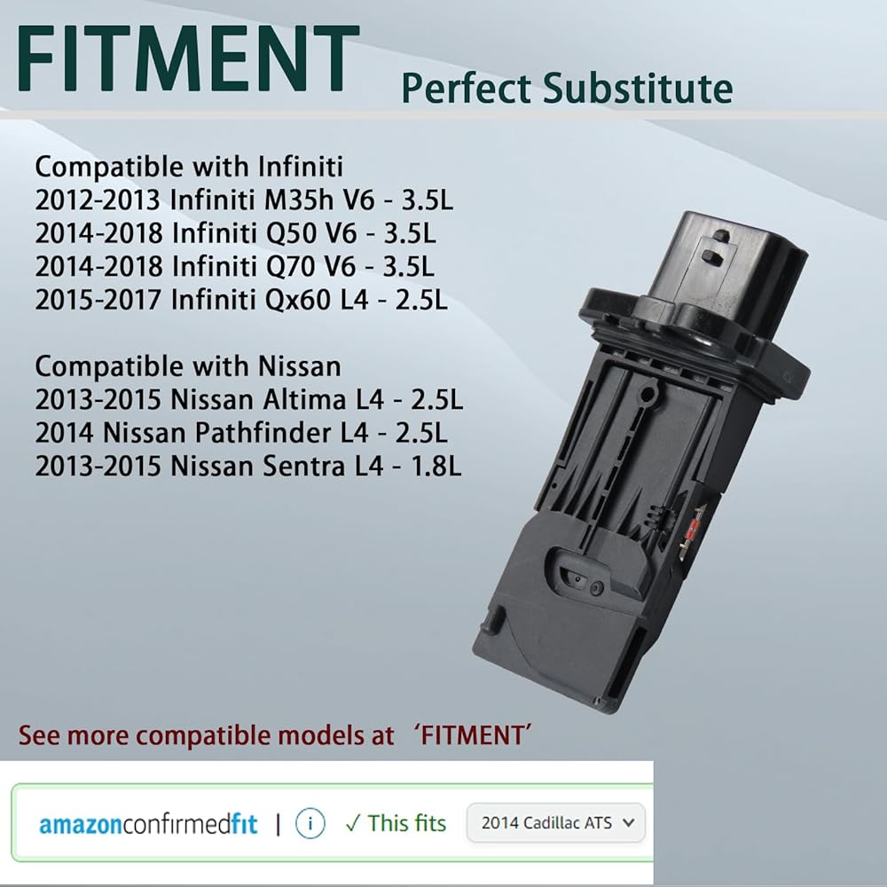 COMPATIBLE VEHICLES: MAF0102 Mass Air Flow Sensor fit for 2013-2015 Nissan Altima L4 - 2.5L, 2014 Nissan Pathfinder L4 - 2.5L, 2013-2015 Nissan Sentra L4 - 1.8L.