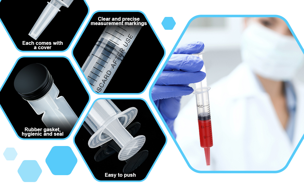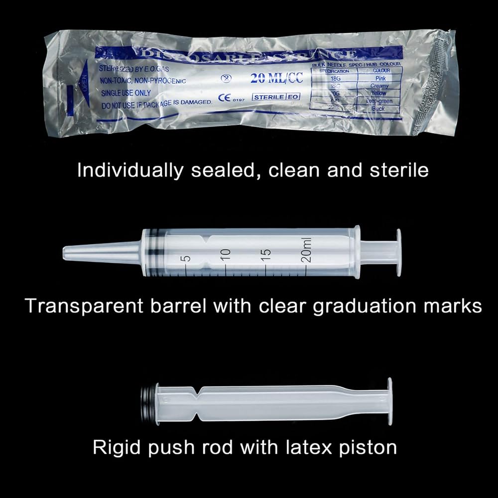 كمية كبيرة: 20 عبوة من المحاقن البلاستيكية، كمية كافية يمكن أن تلبي احتياجاتك اليومية ومتطلبات الاستبدال، وسوف تمنحك تجربة استخدام لطيفة.