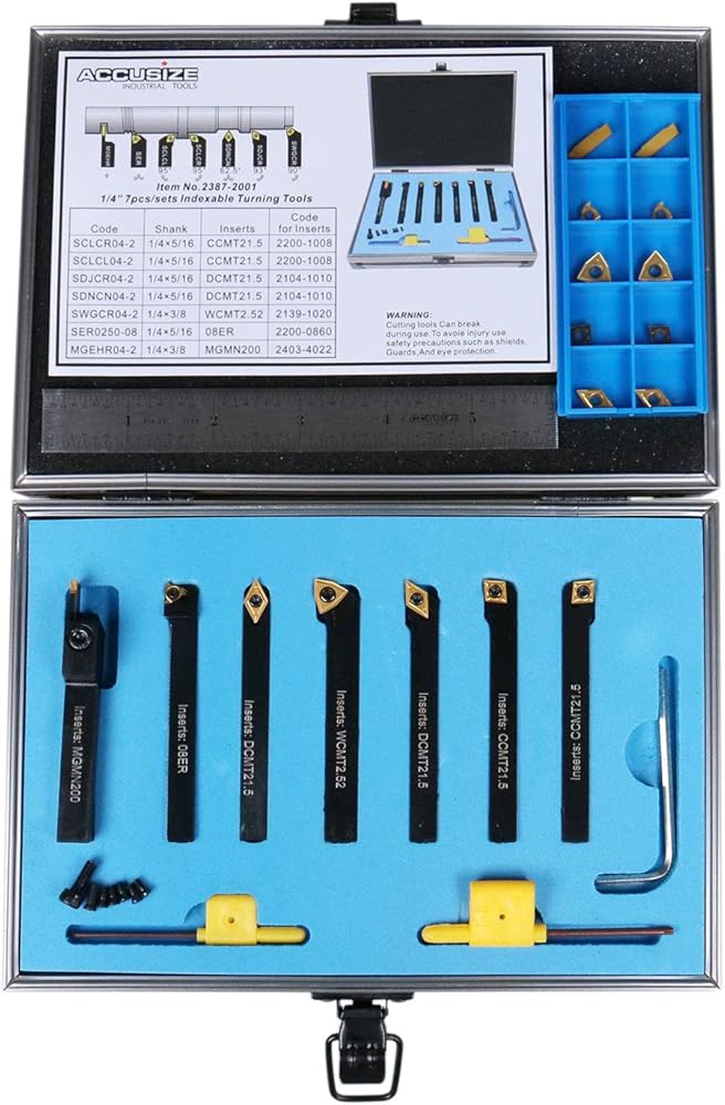 • مجموعة أدوات تحويل كربيد قابلة للفهرسة مقاس 1/4 بوصة. لمسة نهائية ناعمة مؤكسدة باللون الأسود على كل نمط حامل أداة تحويل وحجم الساق.