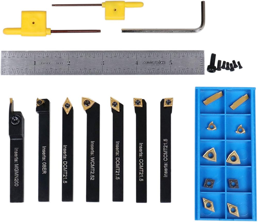 • 7 قطع من حامل أدوات الدوران القابل للفهرسة؛ 7 قطع من كربيد C6 المطلي بالتين؛ 7 قطع براغي سداسية؛ 3 قطع مفاتيح سداسية؛