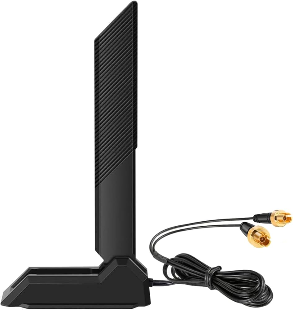 • Gain: 9dBi; Tri band WiFi Antenna: 2.4GHz(2400-2500MHz)/5.8GHz(5150-5850MHz)/6GHz(5900-7125MHz); Support 802.11 ax/b/a/ac/g/wifi 6/wifi 6e; Connector Cable: Dual 6.5Feet Cable With RP-SMA Male Connector;