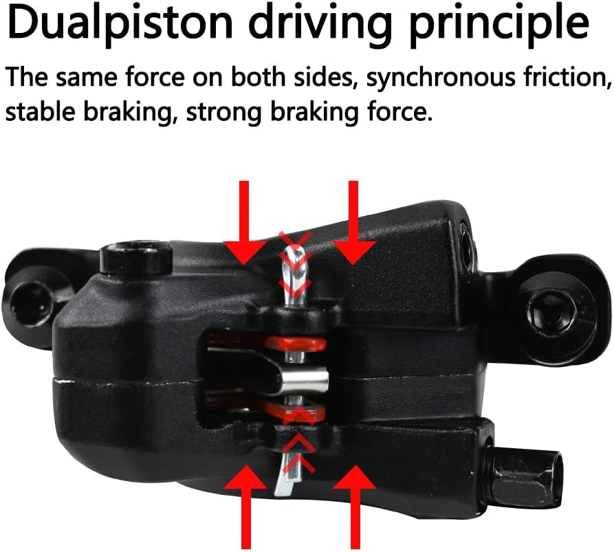 Double piston drive: both sides drive the friction discs at the same time, the brake pads automatically return, equal force on both sides, simultaneous friction, smooth braking and strong braking power.