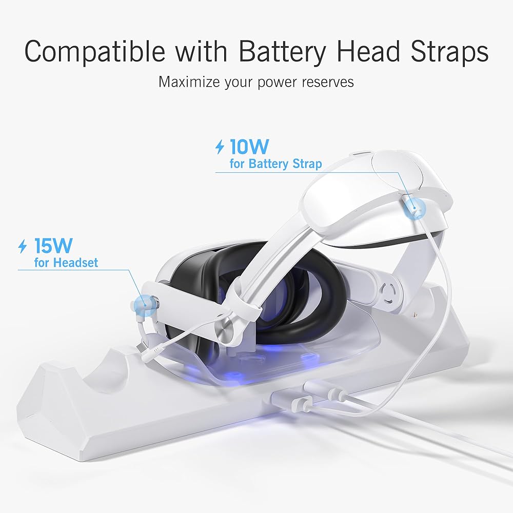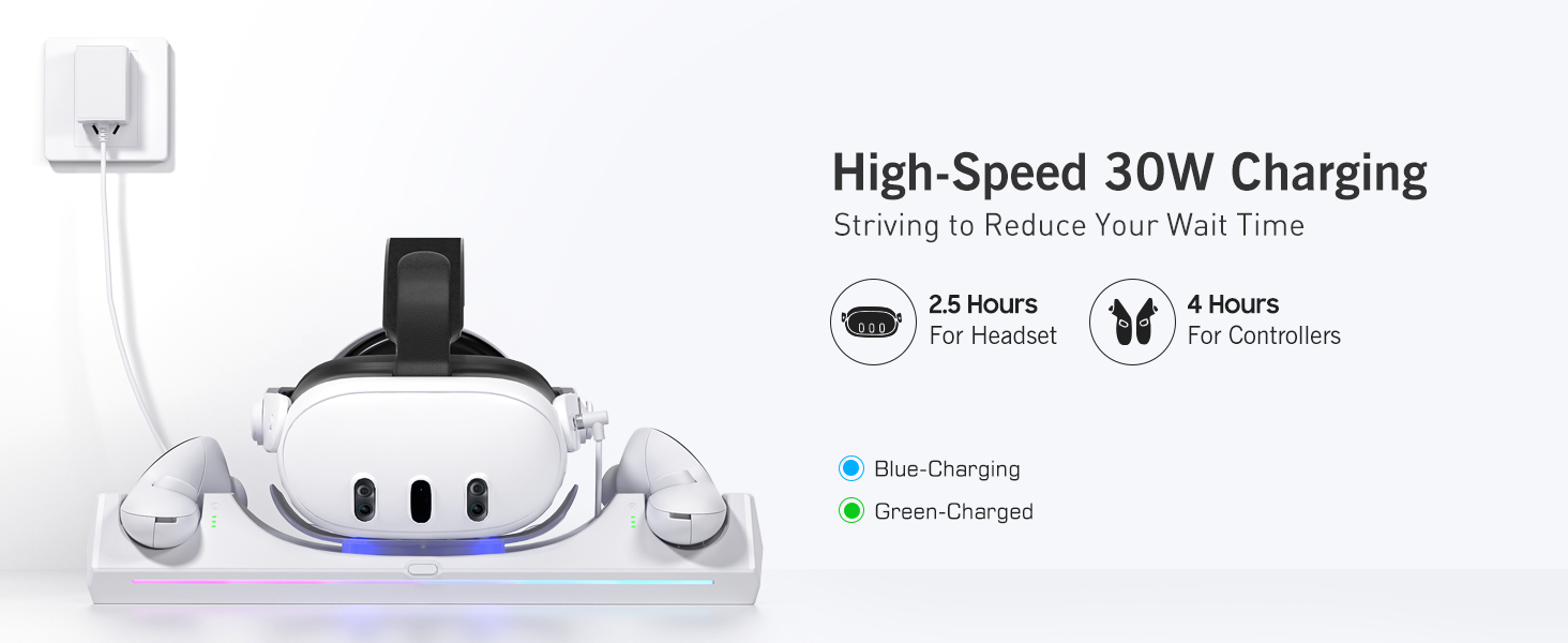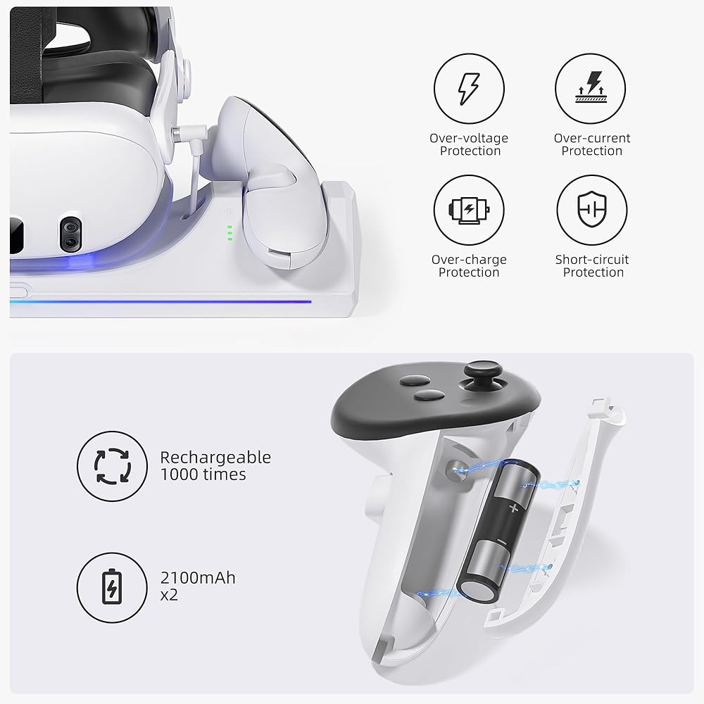 【حماية شحن متعددة】 تتميز محطة الشحن بشريحة حماية ذكية، مما يوفر ضمانات شاملة ضد الجهد الزائد والتيار الزائد والشحن الزائد. نحن ملتزمون بإنشاء تجربة شحن موثوقة للغاية وخالية من القلق للاعبين. لا داعي للقلق بشأن إيقاف تشغيل الطاقة مما يؤدي إلى الشحن الزائد لسماعات الواقع الافتراضي، وبالتالي إطالة عمر أجهزتك.