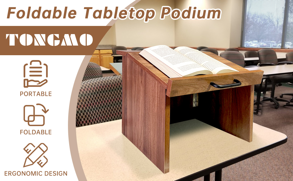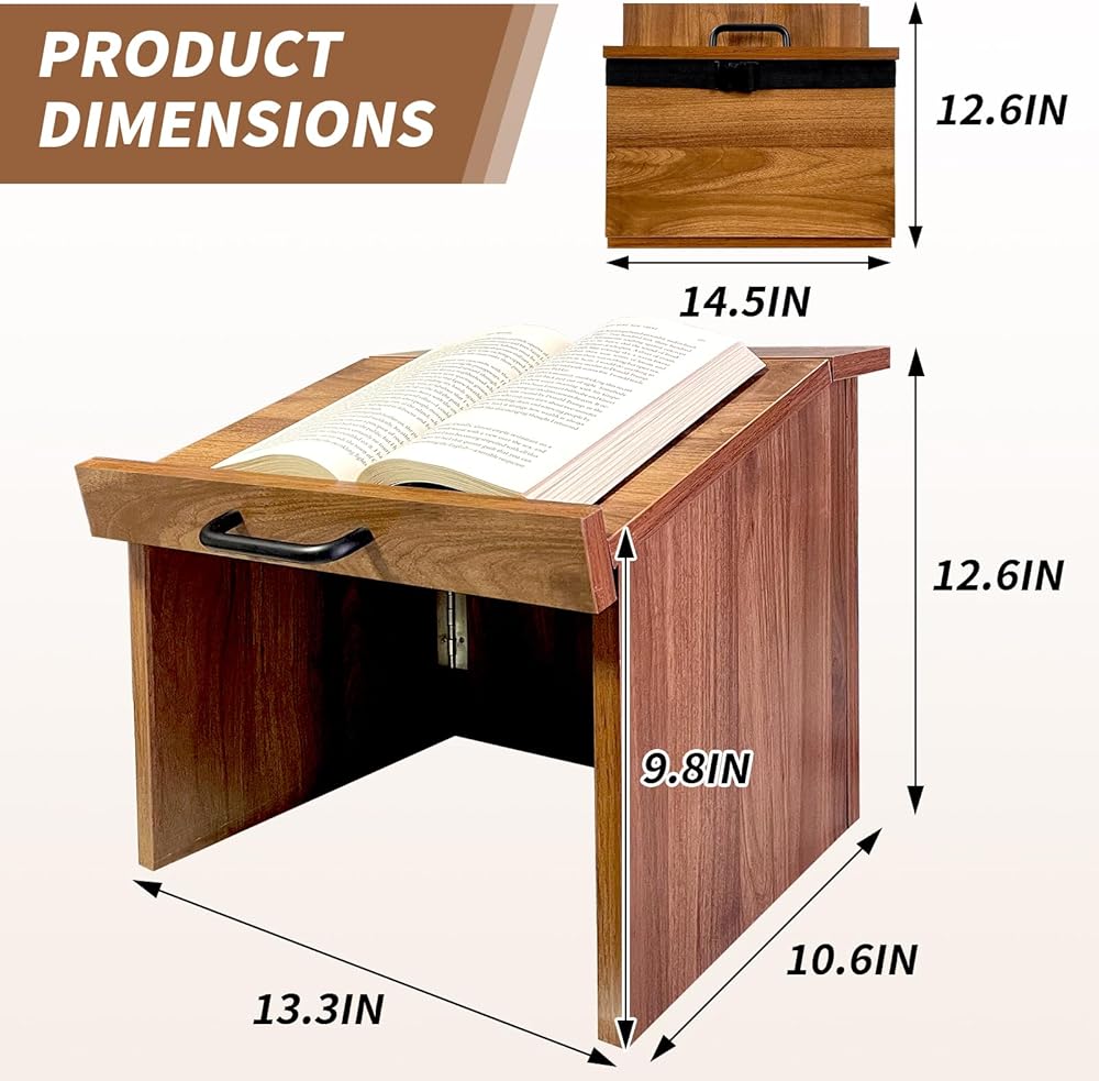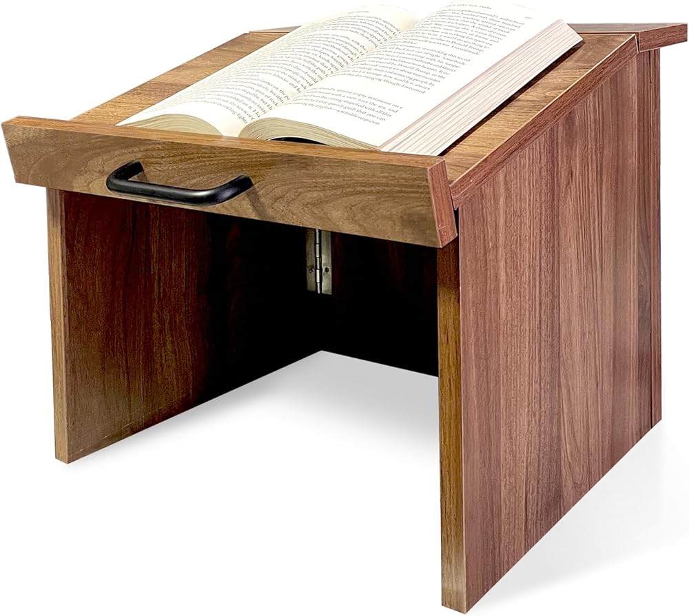 منصة محمولة على سطح الطاولة: حامل كتب منبر مع حامل كتب، تصميم قابل للطي، وتخزين مريح (جوز، متوسط)