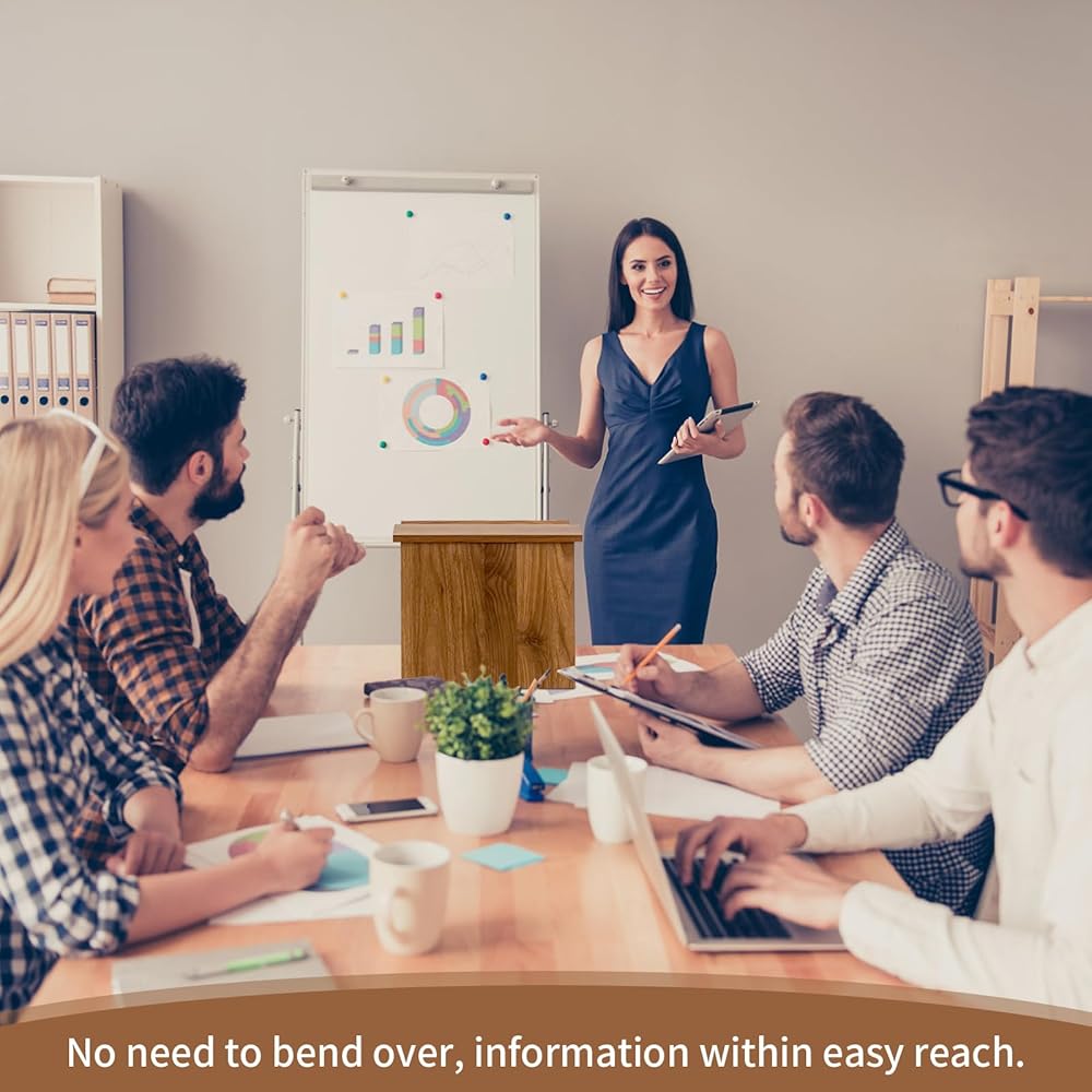 • لا يتطلب التجميع: المنصة المحمولة لا تتطلب التجميع. قم بإعداد منصة الطاولة الخاصة بك في ثوانٍ، وستكون جاهزًا لإلقاء خطابك أو عرضك التقديمي.