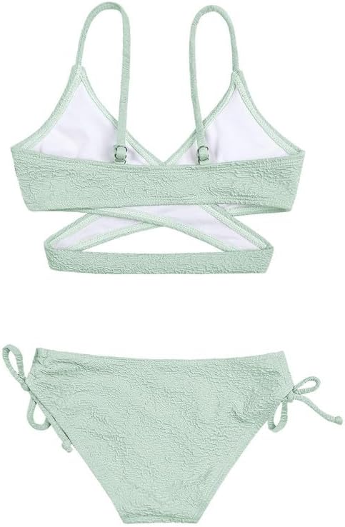 مميزات التصميم: ملابس سباحة للفتيات برقبة على شكل حرف V، قمصان علوية بتصميم أشرطة سباجيتي مجوفة، أربطة في الجزء السفلي، أزياء فريدة لأطفالك في حفلة حمام السباحة على الشاطئ.