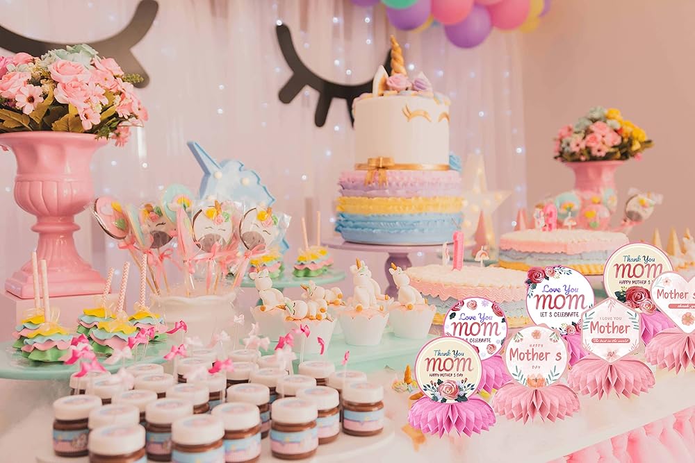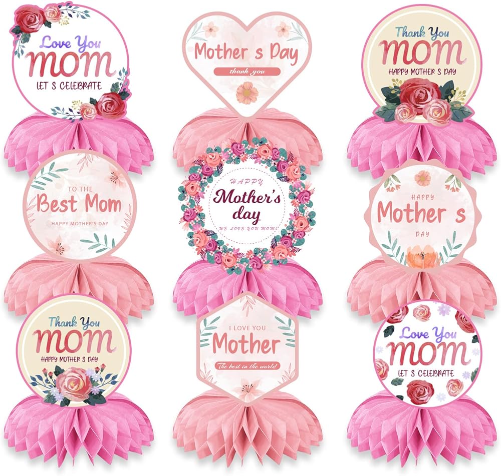 You Will Get:9 Pieces Happy Mother's Day Theme Honeycomb Centerpieces.