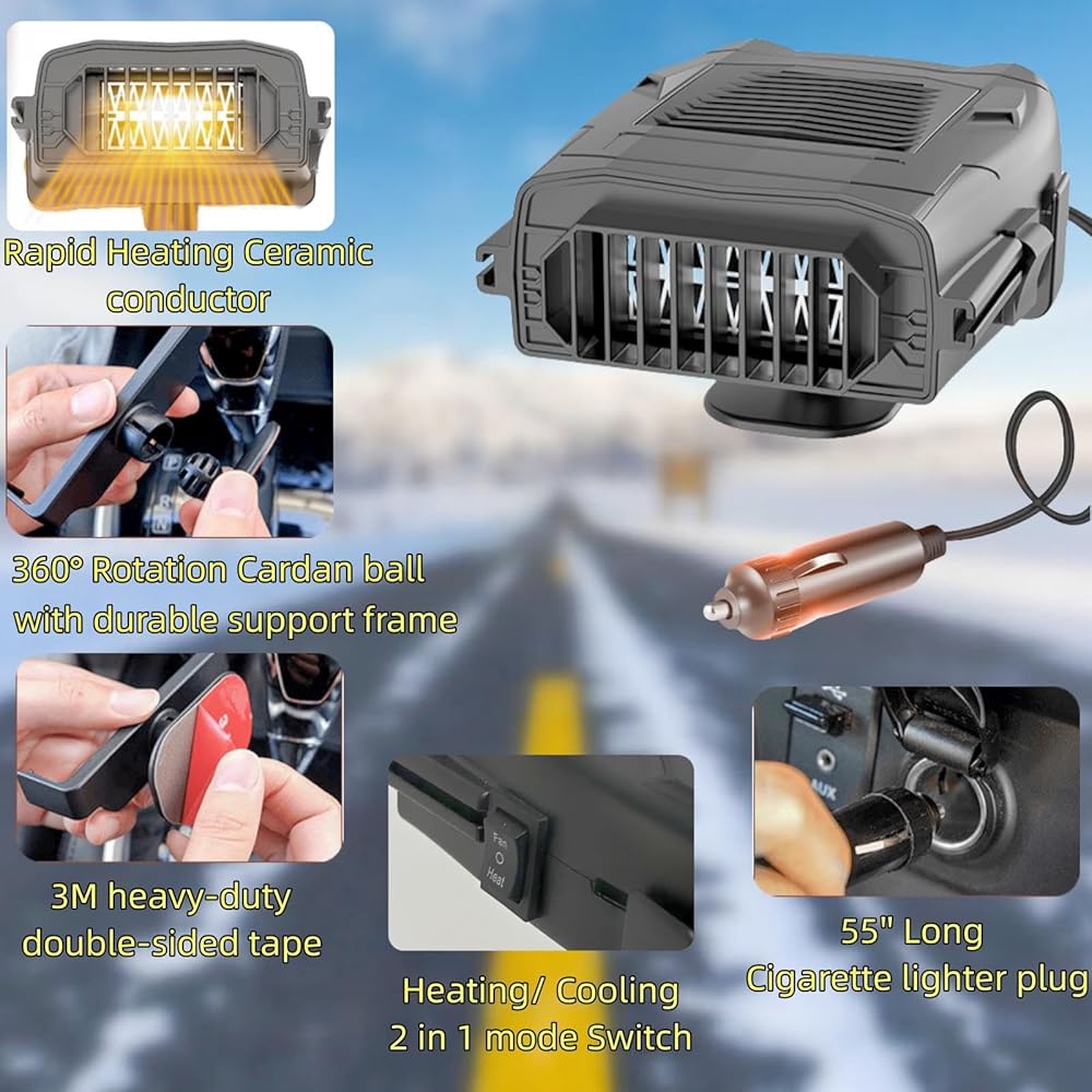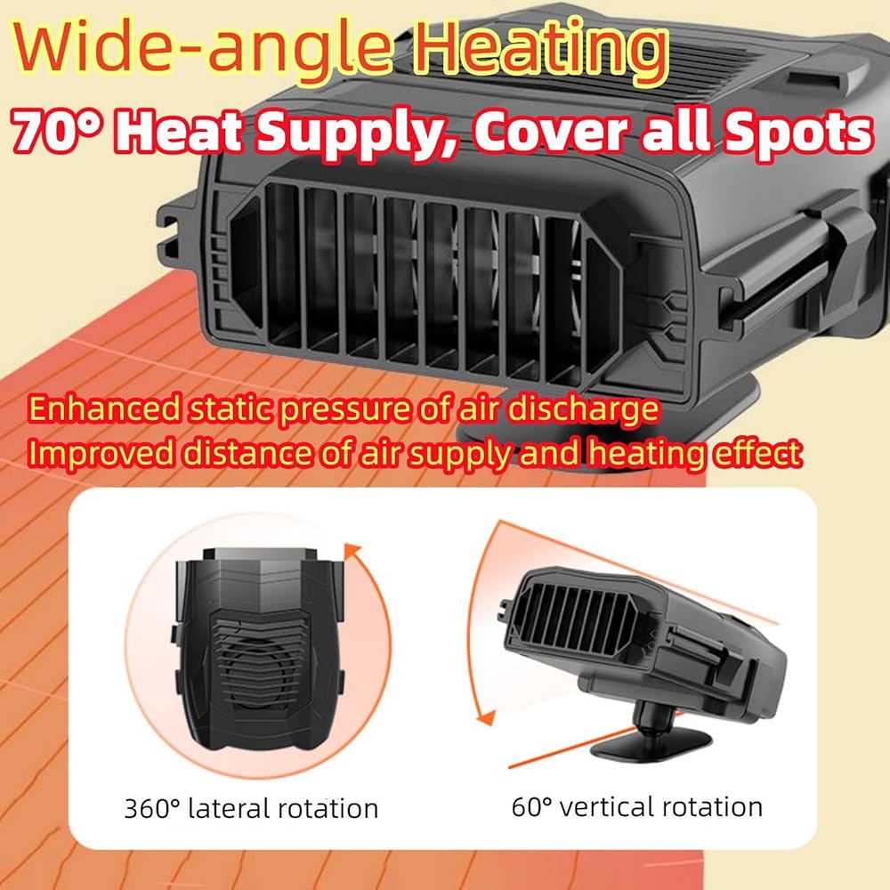 • 【متعدد الوظائف ومتعدد الزوايا】سخان السيارة الذي يتم توصيله بولاعة السجائر، يحتوي على وضعين للتدفئة والتبريد، مناسب لكل من الشتاء والصيف. مع إمداد الهواء بزاوية واسعة 70 درجة، والدوران الأفقي 360 درجة، والدوران الرأسي 60 درجة، يمكن تغطية جميع البقع داخل السيارة بالموجة الدافئة. يمكن أن يؤدي تحويل مدفأة السيارة إلى الخلف إلى إزالة الجليد بسرعة وإزالة الضباب عن الزجاج الأمامي.