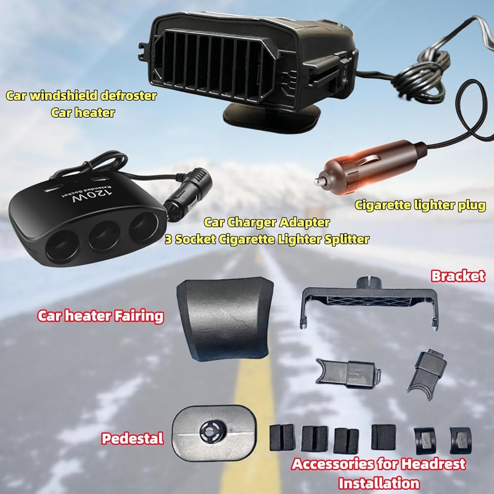 • 【تصميم فريد】مع ملحقات إضافية مثل الواجهة والمشابك، يمكن أيضًا وضع السخان المثبت على السيارة بين أعمدة الحديد على مسند رأس مقعد السيارة أو الخلف أو الأمام حتى يتمكن ظهرك أو الركاب الجالسين في المقاعد الخلفية من الاستمتاع الدفء الذي يجلبه أيضًا.