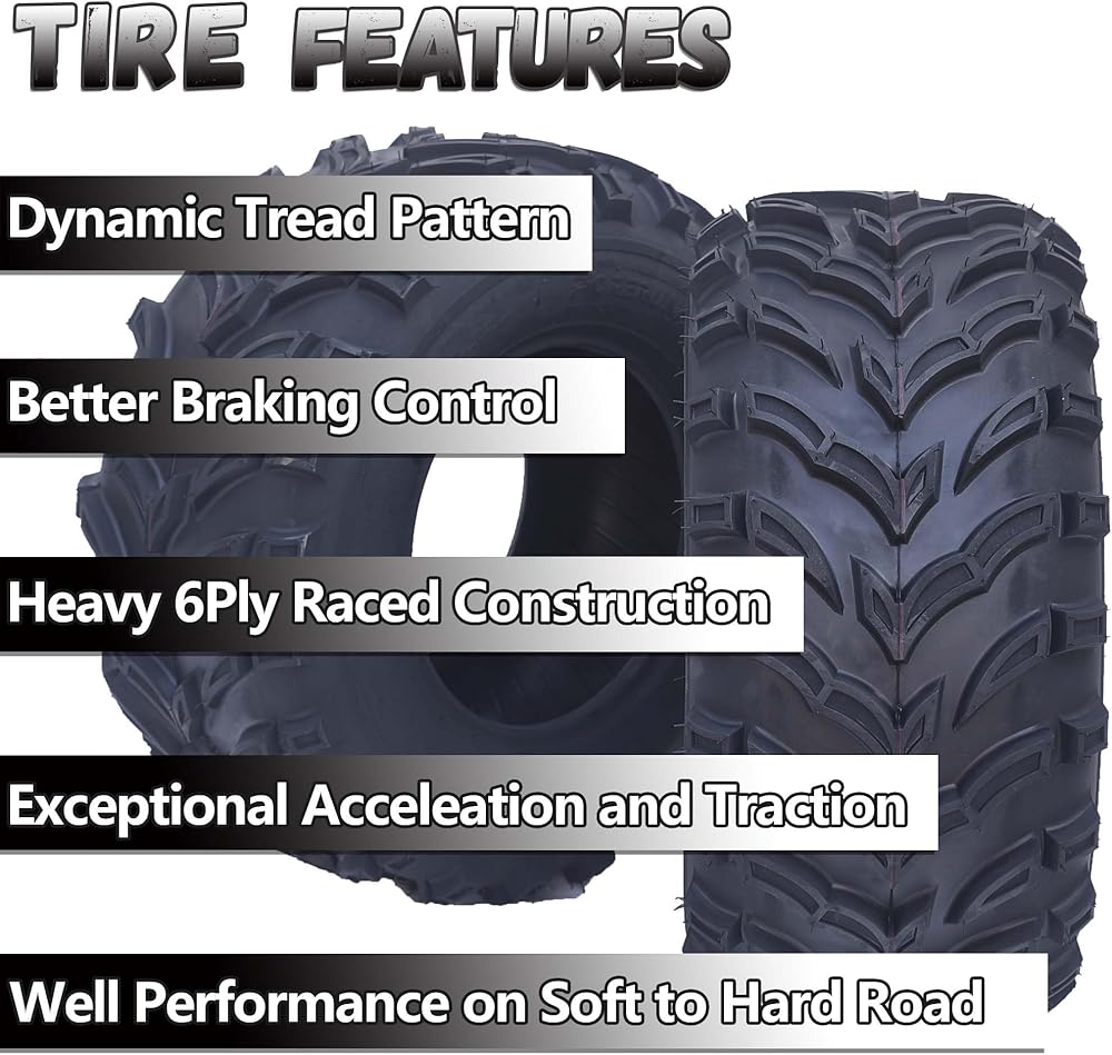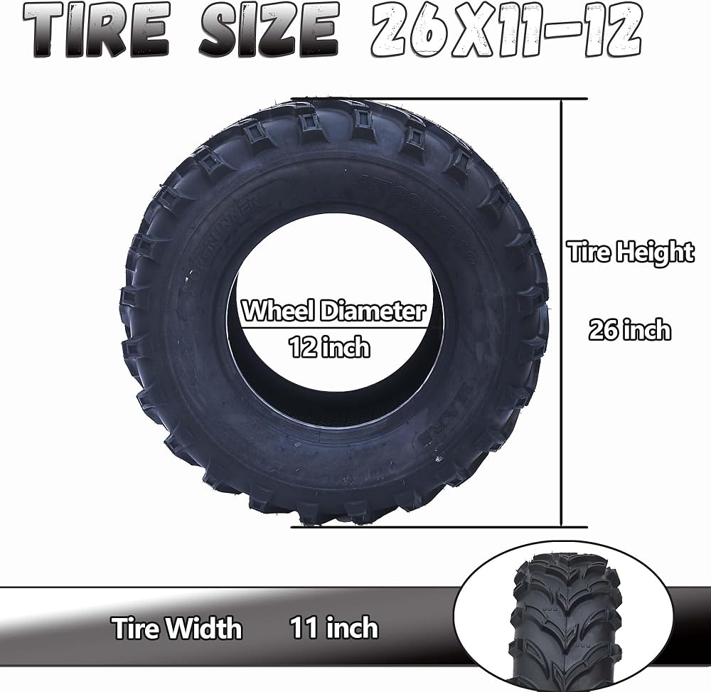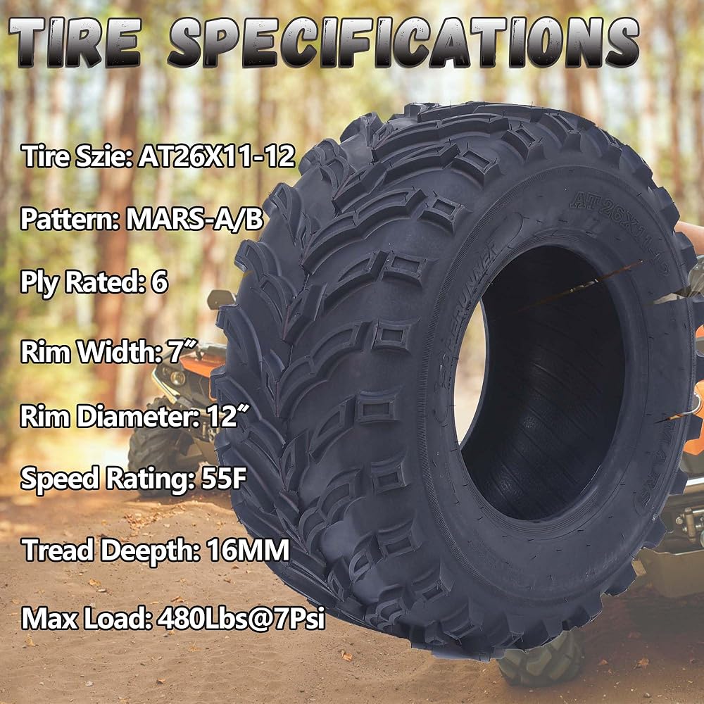 26x11-12 6PR ATV/UTV Tires All-Terrain Tires Set of 2, Super Traction And Control, Optimum Grip MARS Pattern for Enhanced Off-Road Handling, 6PR ATV Tire Puncture And Abrasion Resistant for Off-Road