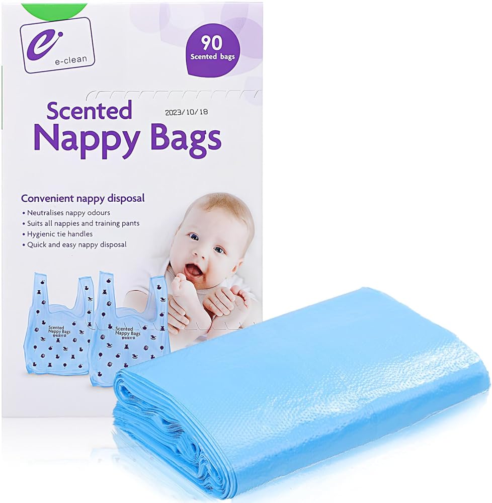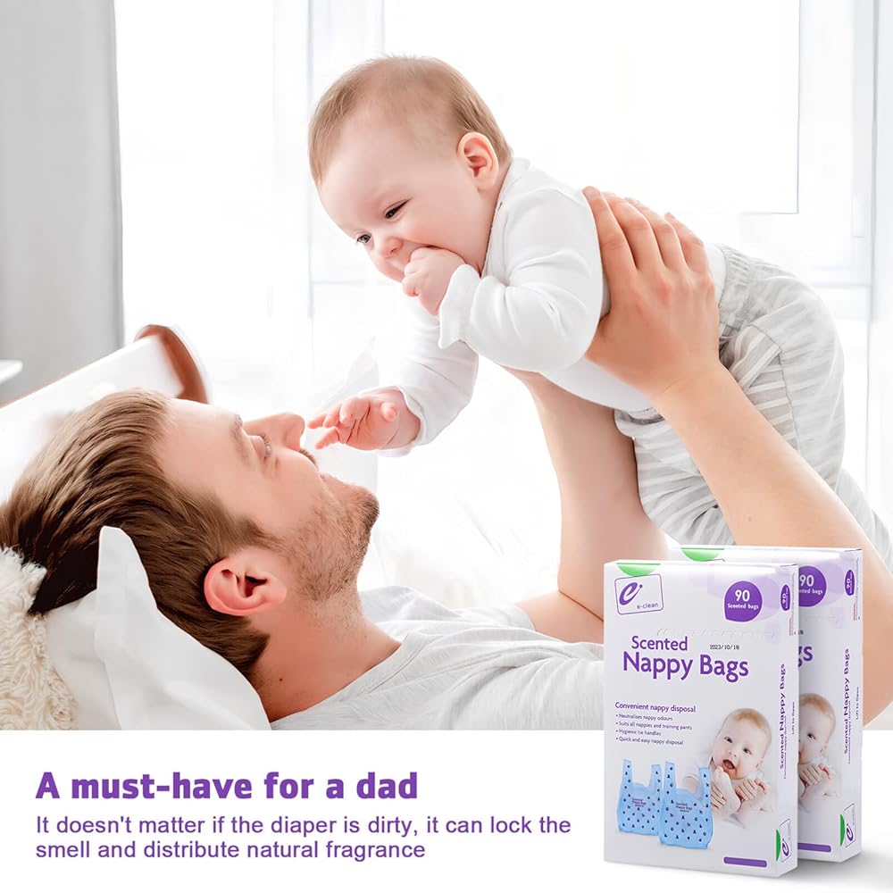 180pcs Baby Disposable Diaper Bags Scented Disposable Diaper Sacks Trash Bags Refills Baby Diaper Trash Bags with Tie Handle, Thickened, Easy-to-Tie Tabs, 90PCS/Box (2 Boxes)