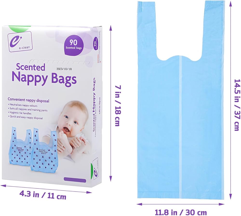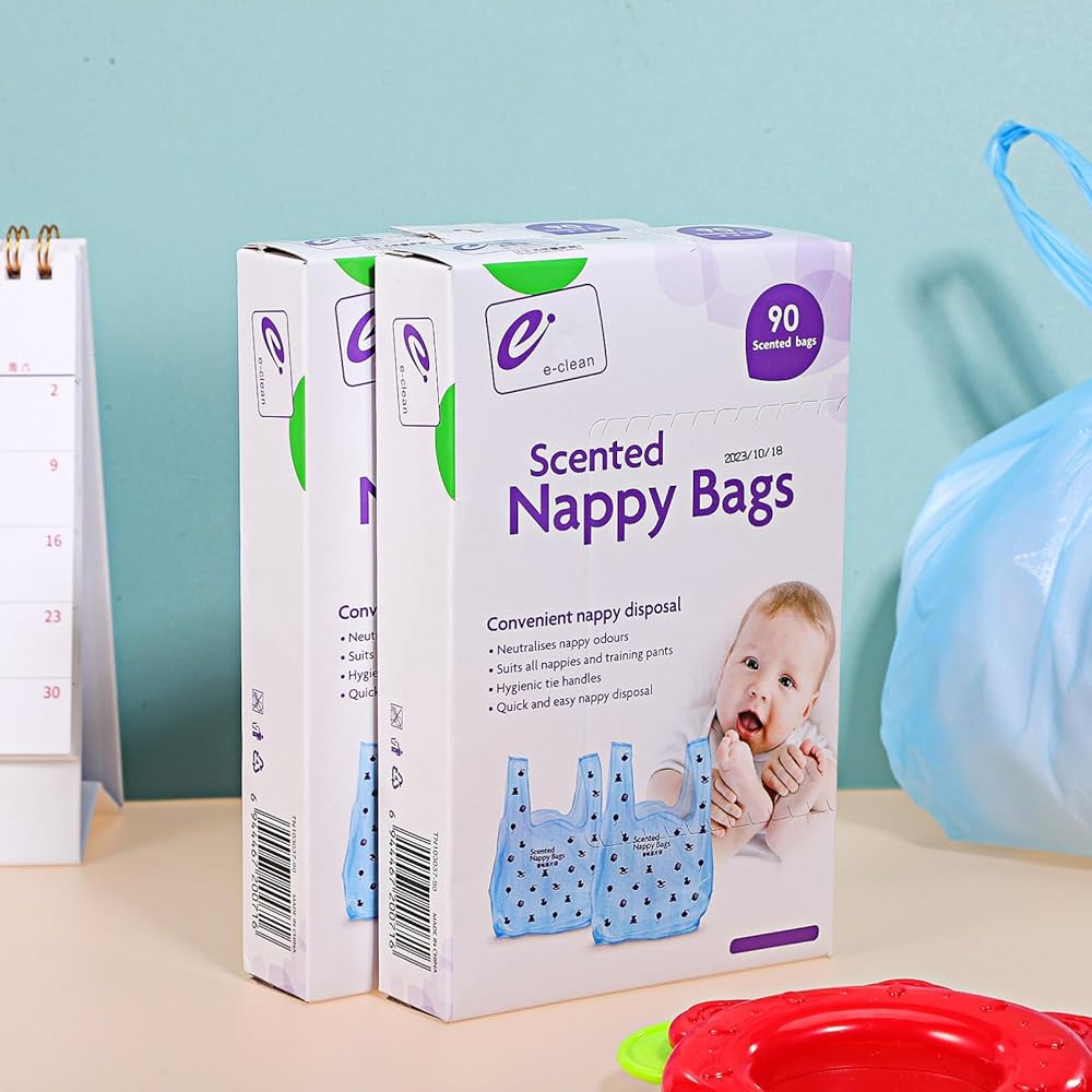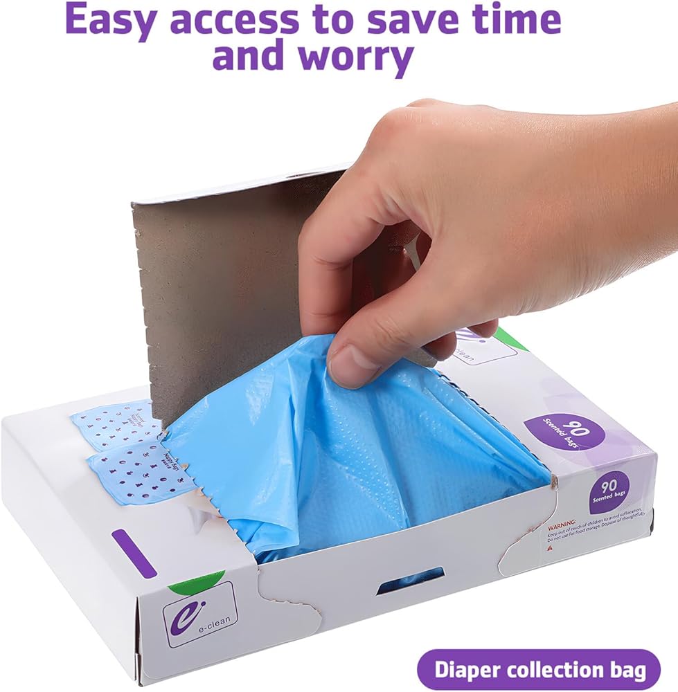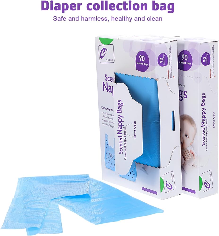 【Intimate design】: The boxed opening packaging design is comfortable to use, box can be opened and closed repeatedly. Each box contains 90 disposable diaper bags. 2 boxes of garbage bags in total. The box is equipped with hanging holes for easy carrying and hanging. It can be hung on a stroller for convenient storage.