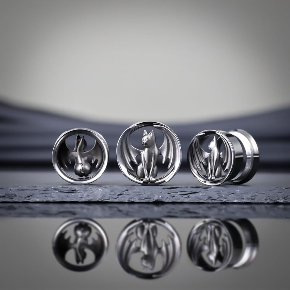 The design is made from stainless steel, fly cat ear tunnels.