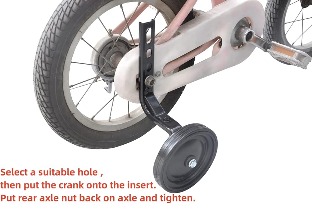 • SIZE ADJUSTABLE:There are some holes on two sides of the training wheel arm, you can adjust to different holes to fit your bike size.