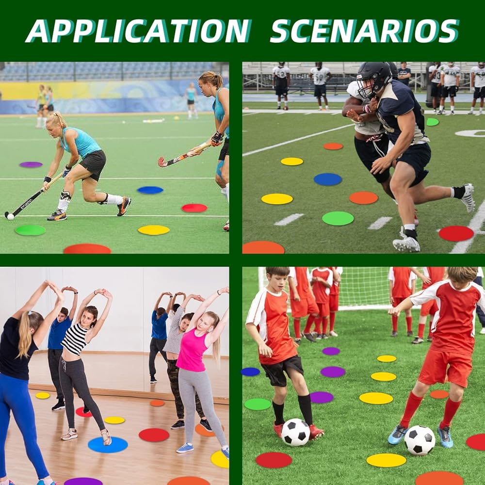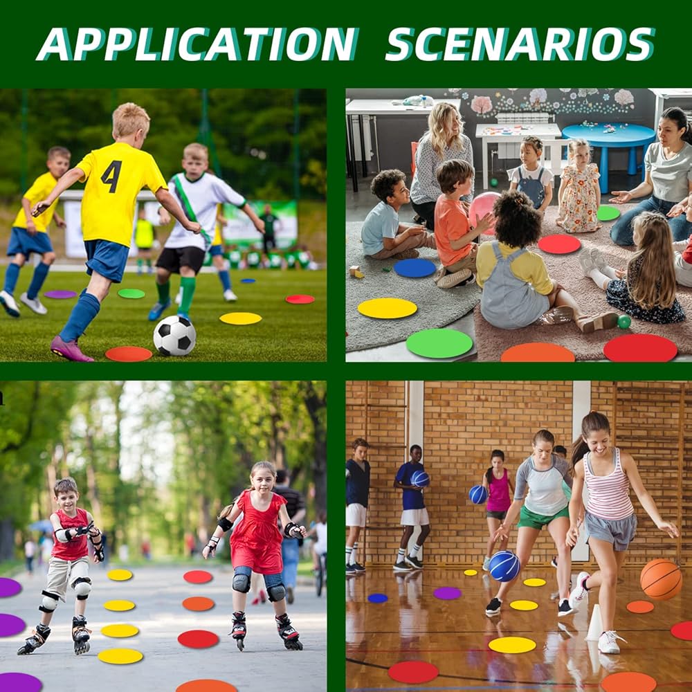 These soccer markers perfectly fit for sports, school training playground, classroom, and other party activities. These carpet spots could keep kids entertained for hours, and improve their creativity and cognitive abilities at the same time. Perfectly fit for many different occasions, such as football, soccer, basketball, fitness, sports training, and other sports.