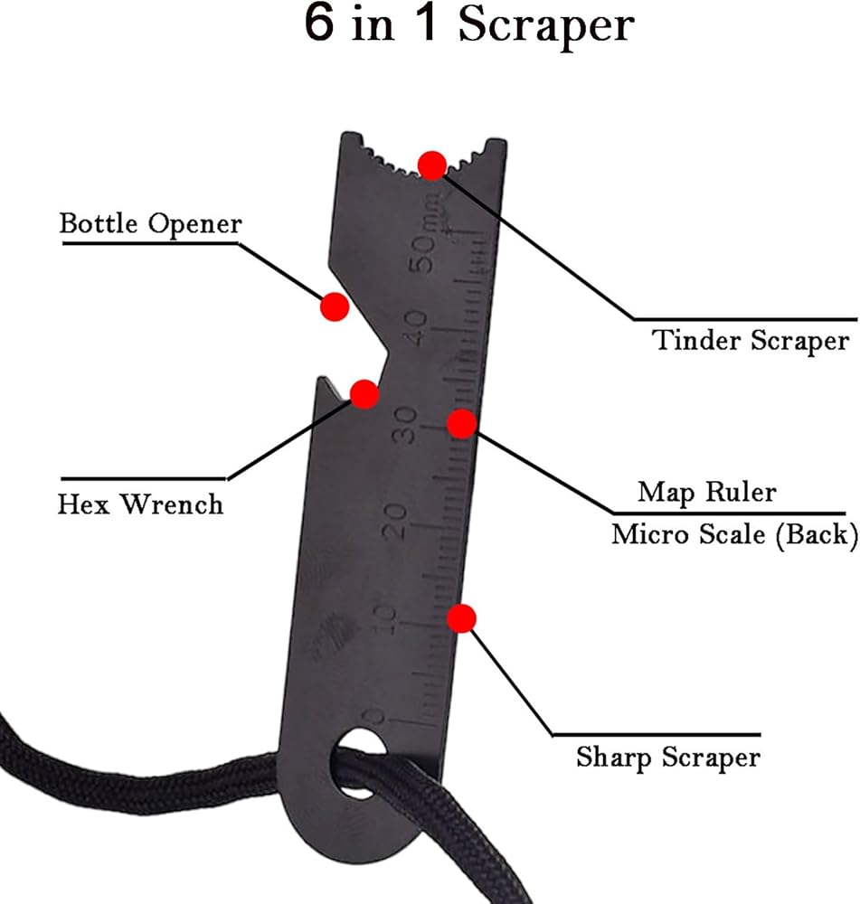 Versatile Multi-Tool Design: The camping Flint fire starter features a comfortable painting wood handle with a built-in compass, and the flint striker doubles as a hex wrench, scraper, ruler, and bottle opener.