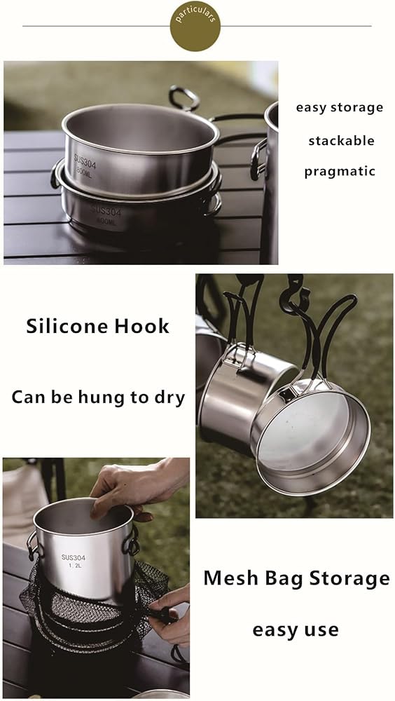 ✔Durable: Made of high-quality stainless steel, the camping pot is lightweight but sturdy, heats quickly, easy to clean and durable.