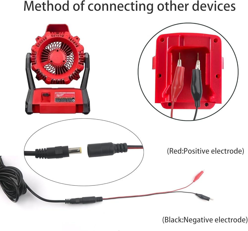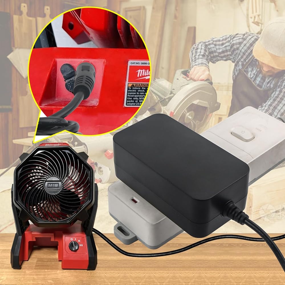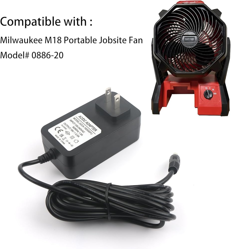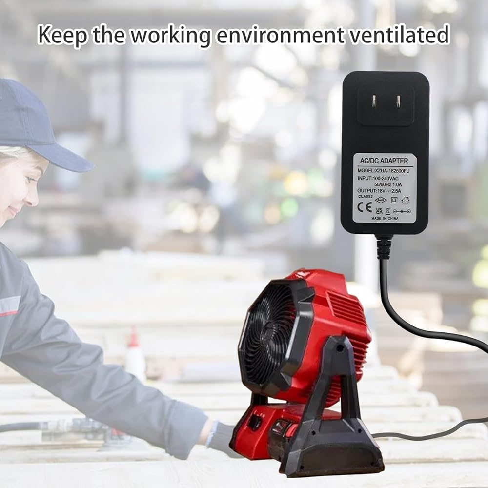 18V Power cord for Milwaukee 0886-20 M18 23-81-0701 E045-1H180250HU ML14-46-2024 HK-X145-A18 cordless fan Electrical equipment with a DC voltage of 18 volts and 2.5 amperes