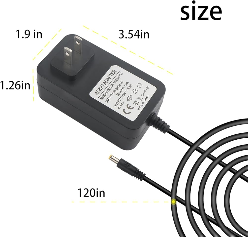 Input: AC 100V-240V, Output: 18V DC Level 2 power supply, American standard wall plug, 10ft/3M ultra long power cord.
