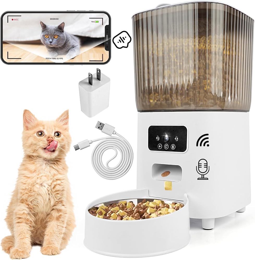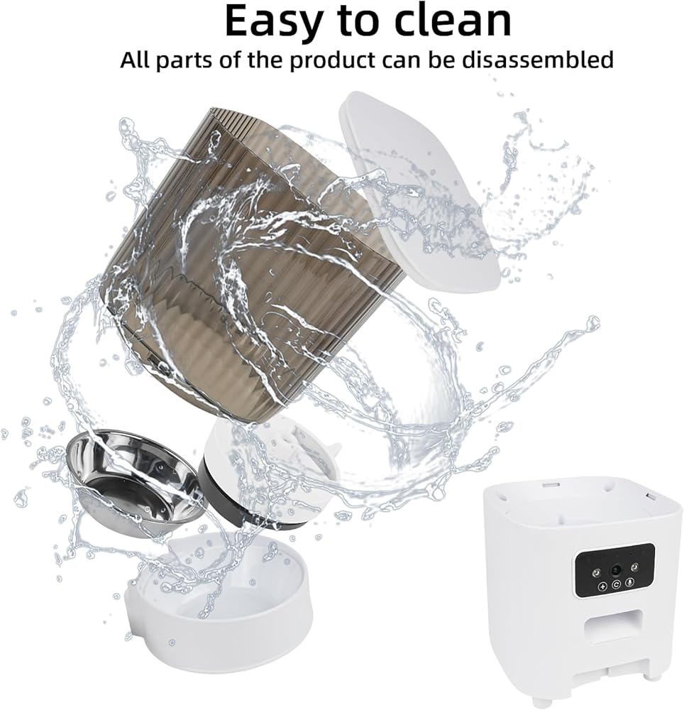 وظيفة الكاميرا والتسجيل: تتميز وحدة تغذية القطط الأوتوماتيكية المزودة بالكاميرا بدقة عالية 1080 بيكسل وكاميرا بزاوية واسعة 145 درجة، مما يسمح لك برؤية حركات حيوانك الأليف في أي وقت وفي أي مكان، وتأتي مع وظيفة تسجيل وصوت ثنائية الاتجاه، حتى تتمكن من ذلك التواصل مع حيوانك الأليف من خلال التطبيق، ويمكن تخزين الفيديو في السحابة من خلال التطبيق (تحتاج إلى دفع مبلغ إضافي لتشغيل التخزين السحابي)