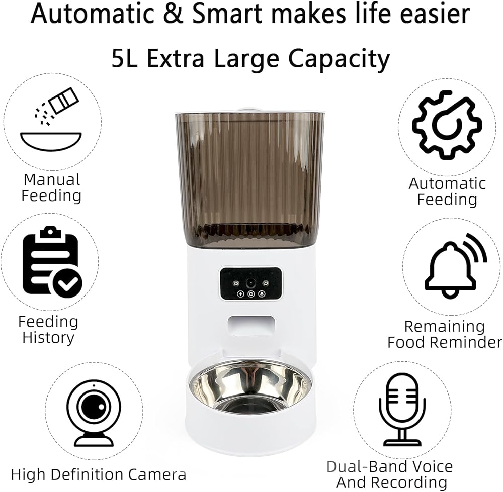 جهاز تغذية تلقائي للقطط: جهاز التغذية التلقائي للحيوانات الأليفة هذا مجهز بنظام تحكم ذكي. يمكنه إطعام حيواناتك الأليفة عبر تطبيق الهاتف المحمول، وأي طعام يقل قطره عن 1 سم (0.4 بوصة) يمكن أن يمر بسلاسة. يمكنك اختيار التغذية يدويًا أو ضبط وقت التغذية تلقائيًا، حتى لو كنت خارج المنزل، يمكنك التأكد من حصول حيواناتك الأليفة على الطعام في الوقت المحدد، حتى لا تشعر بالجوع حتى لو كانت بمفردها في المنزل.