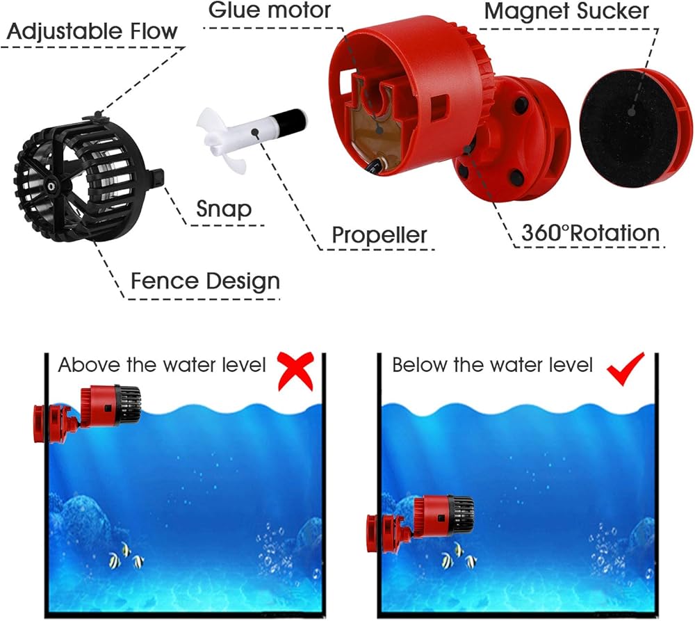 🌊ملاحظة: يجب غمر WaveMaker في الماء بنسبة 100%، ولا تستخدم المضخة بدون ماء. وإلا فقد يتلف عمود المضخة.