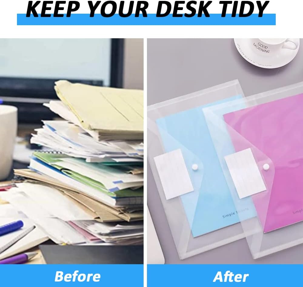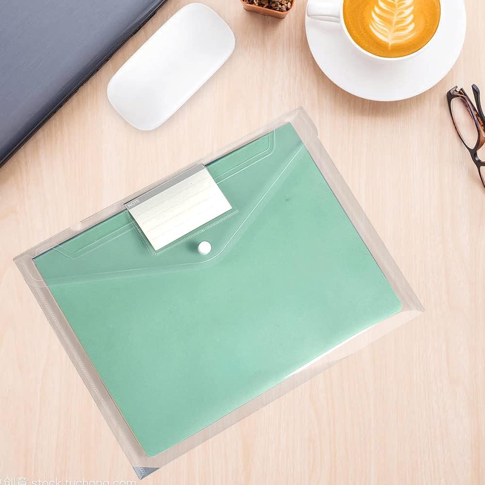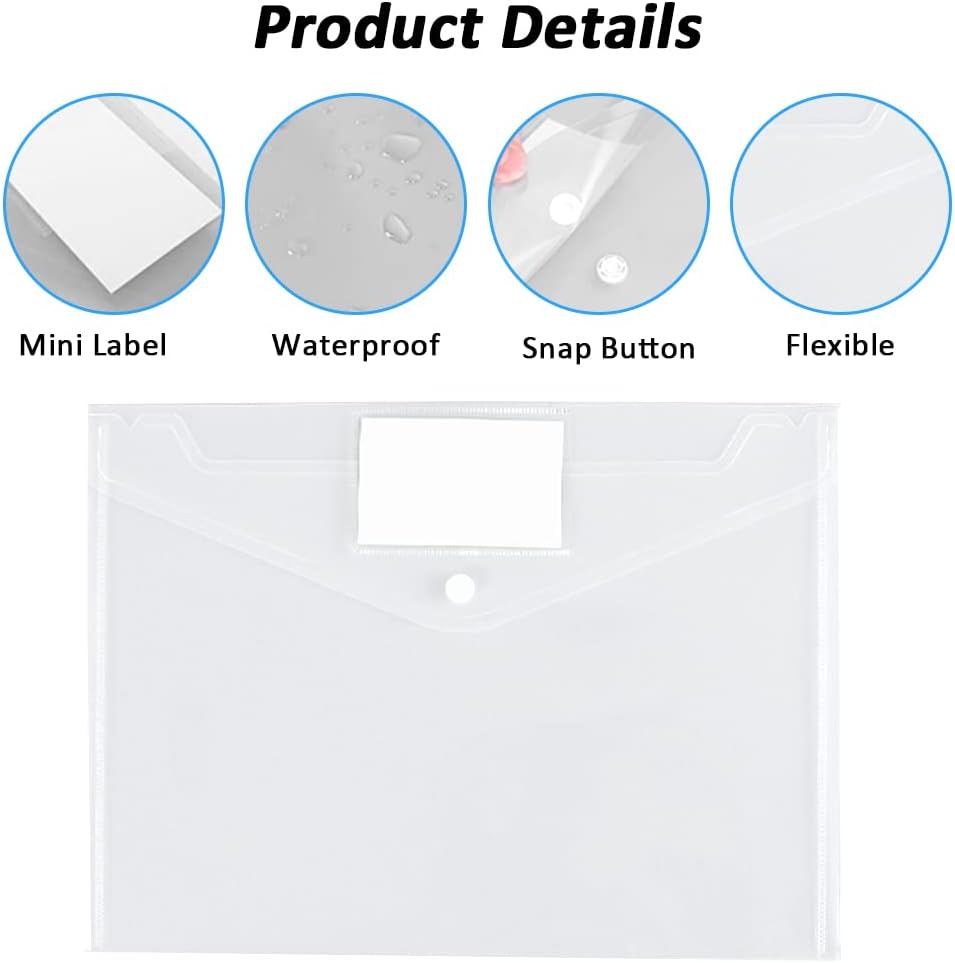 • 【Button Closure Design】:Document folders button is made of plastic material, can be used repeatedly and not easy to damage. We have added a label pocket to the cover, you can add a mark when you use it, so that you can quickly view and find the content. Our transparent binder bags are easy to carry and can keep your belongings in order.