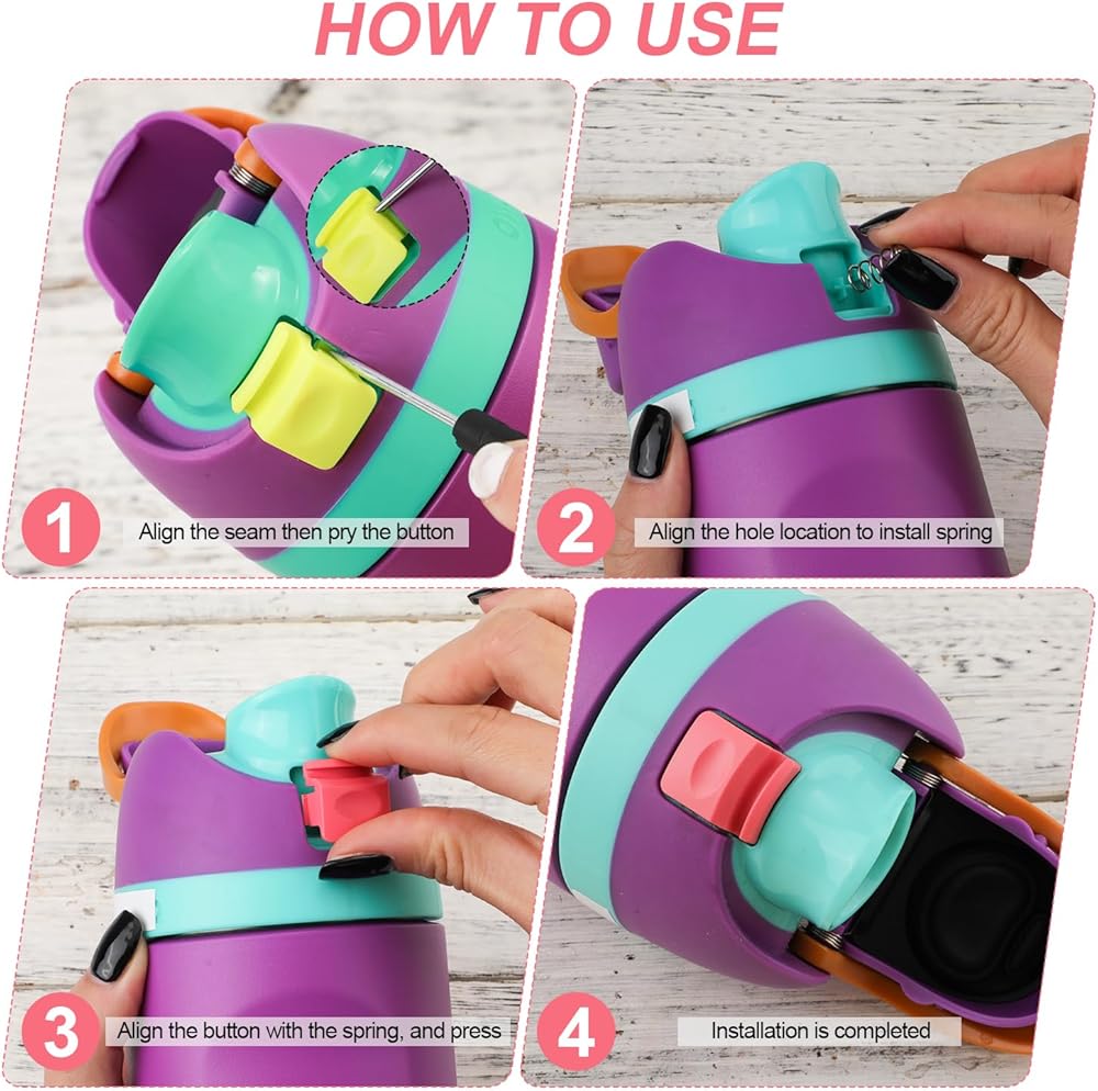 • Package Included: You will receive 2 pieces of replacement buttons compatible with Owala FreeSip 19oz 24oz 32oz 40oz and 25oz clear bottles, and package also includes 2 springs and 1 screwdriver for easy installation. All of them are well packed in a clear case for easy storage. Perfect collocation can meet your needs.