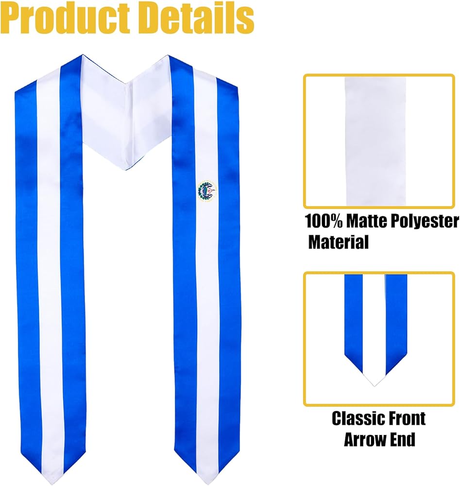 • أفضل هدية تخرج: يمكن لشال التخرج السلفادور هذا أن يزيد من فخر الخريجين في دولة السلفادور وهو أفضل هدية تذكارية للتخرج للطلاب الدوليين في السلفادور.