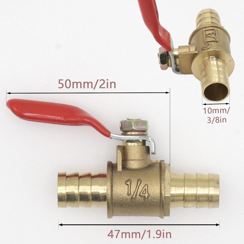 تطبيق متعدد الاستخدامات: تتضمن مجموعة صمامات كرة الماء النحاسية 4 قطع، مناسبة للخراطيم التي يبلغ قطرها حوالي 10 مم / 3/8 بوصة، مع وصلات معرف الخرطوم. على الرغم من وجود علامة "1/4" على جسم الصمام من نقش القالب الموحد، إلا أنها لا تقيد إمكانية تطبيقه على نطاق واسع.