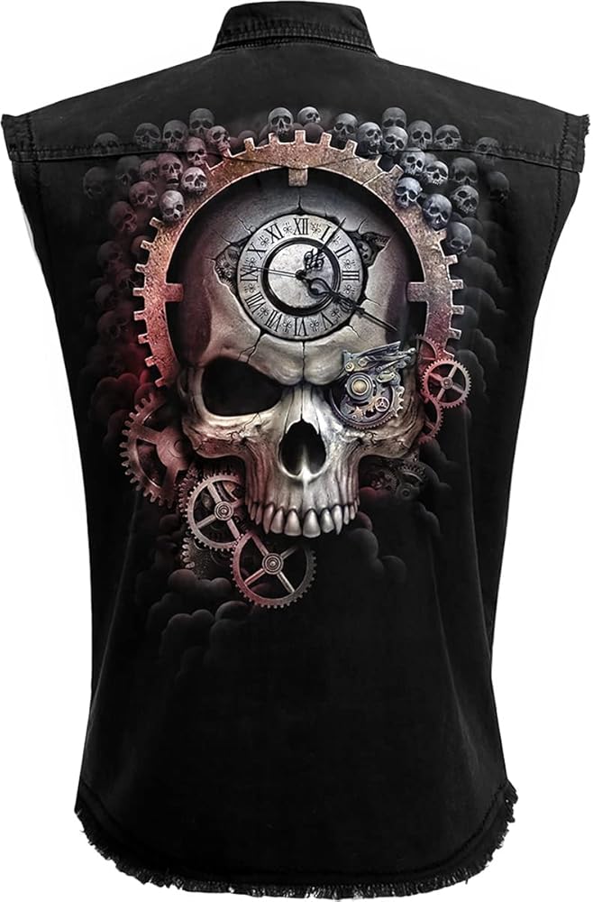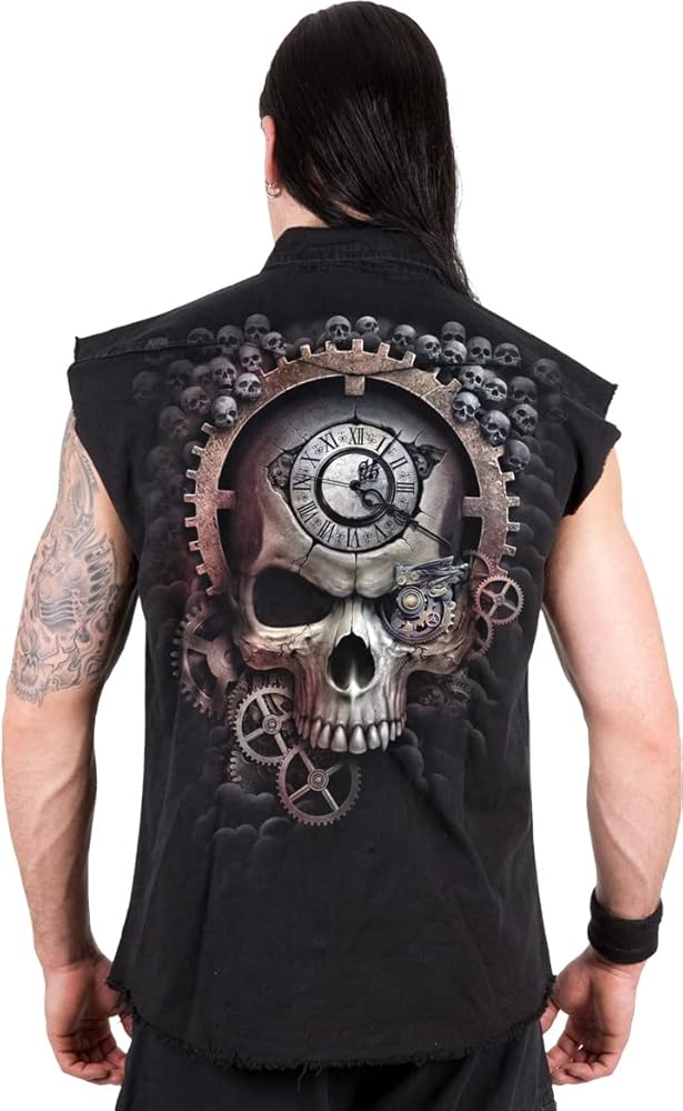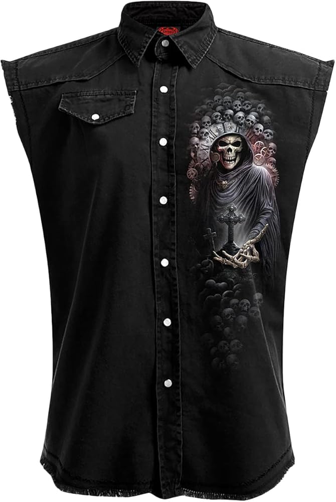 In the foreboding skies above a decrepit graveyard a vision materialises. The Prince of Death himself, the Grim Reaper reaches out his hand to beckon you near. The rusted Cogs of Time can be heard wearily grinding down as your lifeforce reaches its bitter end.. Sleeveless Stone Washed Worker Black is made of Stone Washed 100% Cotton, Denim using skin friendly, Azo-free, Reactive dyes.