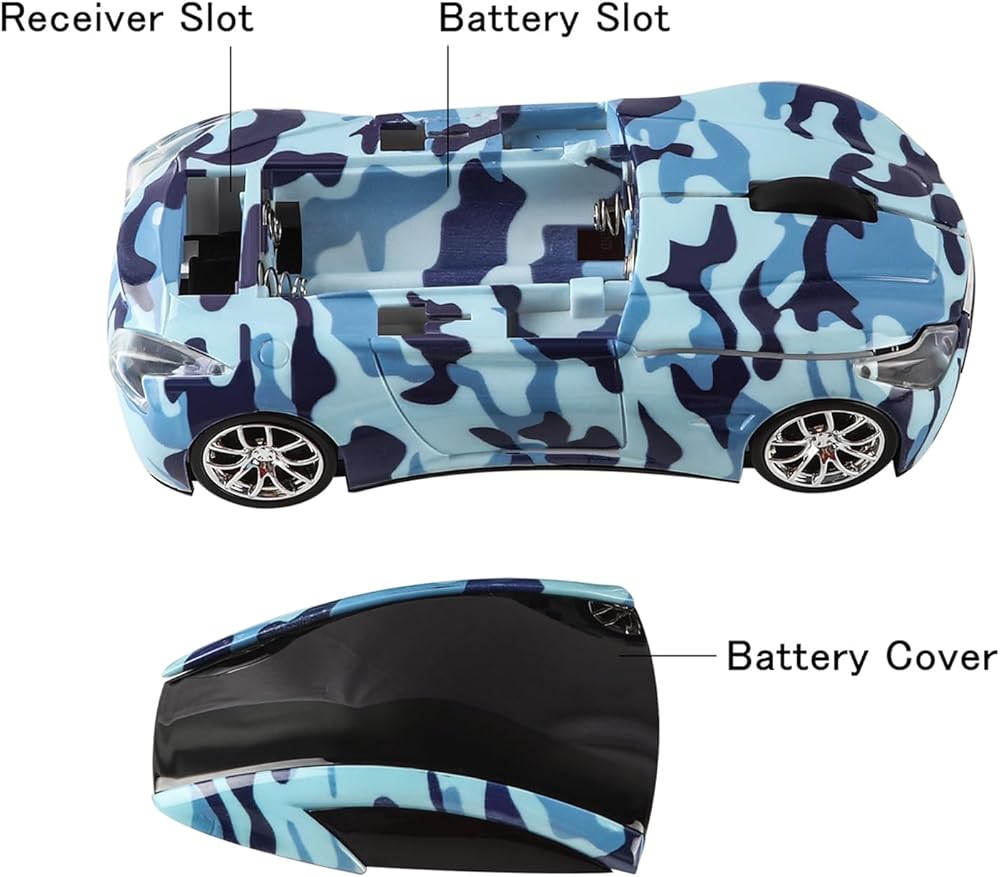 【Cool Sports Car Design】- Wireless USB optical mouse adopts a fashionable sports car design. The car mouse with the symmetrical blue headlights. It is suitable for everyone. This is a great gift for family and friends