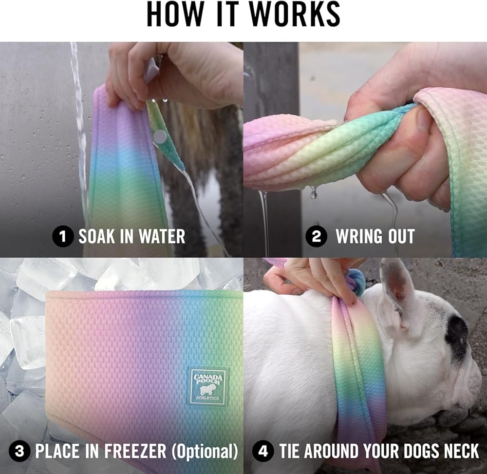 باندانا باردة - هل ترغب في اصطحاب كلبك في مغامرة خارجية ولكنك قلق بشأن الحرارة؟ تحتوي منديل التبريد الخاص بنا على نسيج يحافظ على الماء، وعندما تتلامس الشمس مع الرطوبة الموجودة، سوف يتبخر الماء. وهذا يضمن بقاء كلبك باردًا في الأيام الحارة؛ سواء كنت في رحلة بالدراجة أو تقضي يومًا ممتعًا على الشاطئ! ما عليك سوى إضافة الماء، والعصر، ووضعه حول رأس كلبك، وضبط الأغطية، وستكون جاهزًا للتبريد!