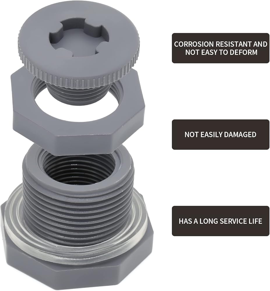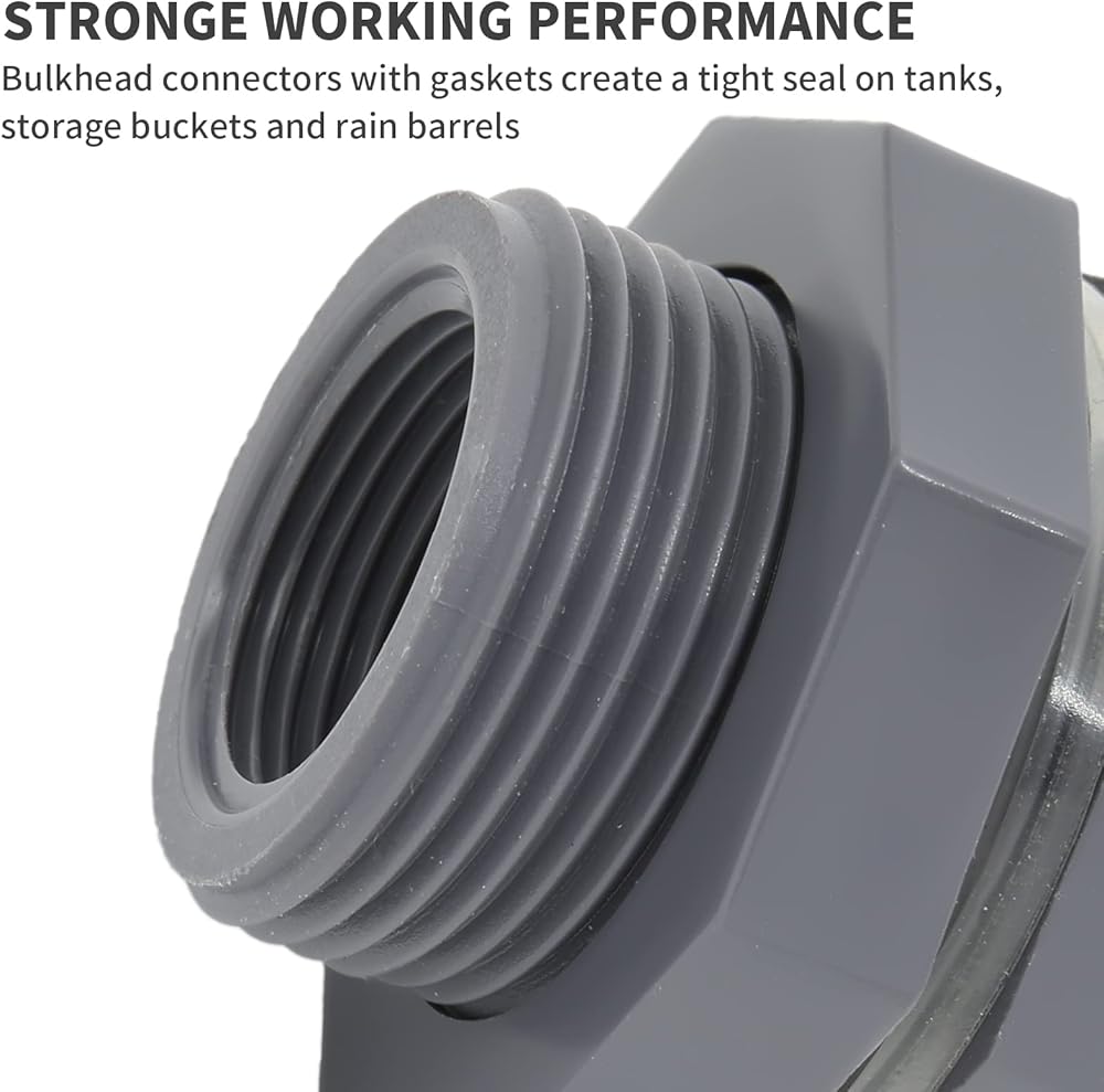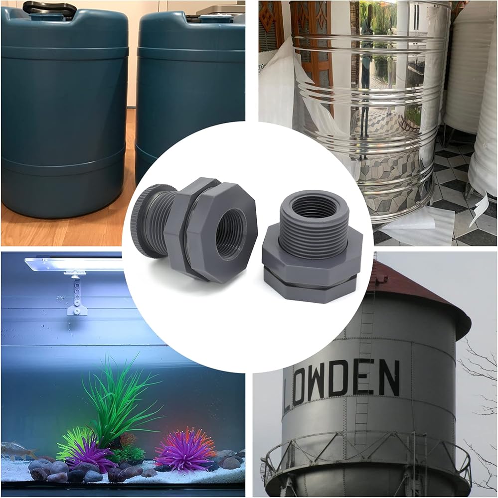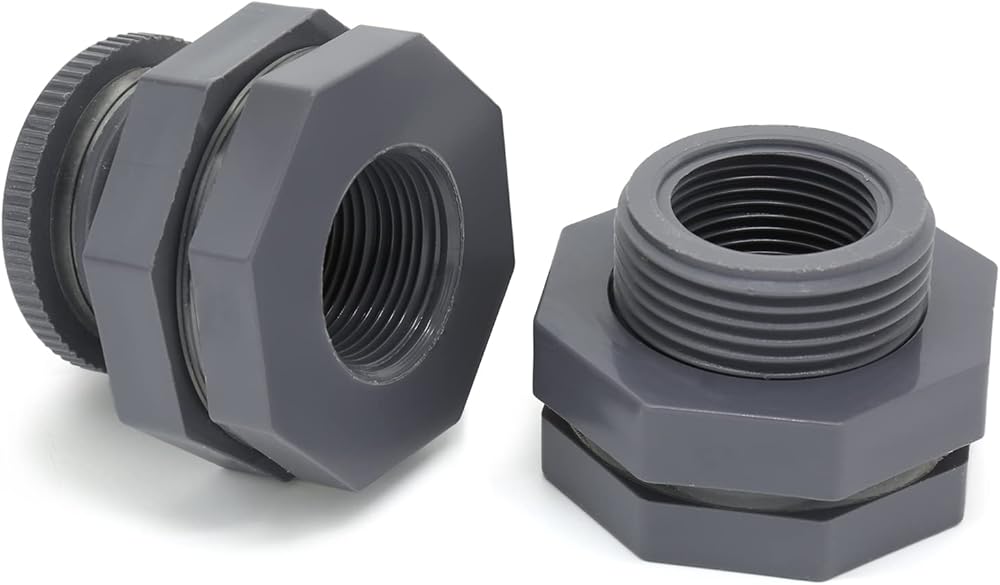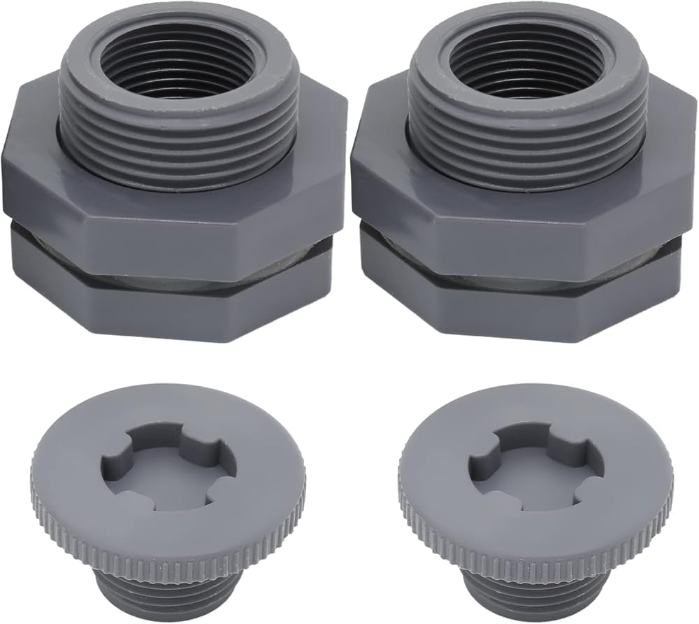 -- Double threaded bulkhead fittings are 2" male and will fit most items.
