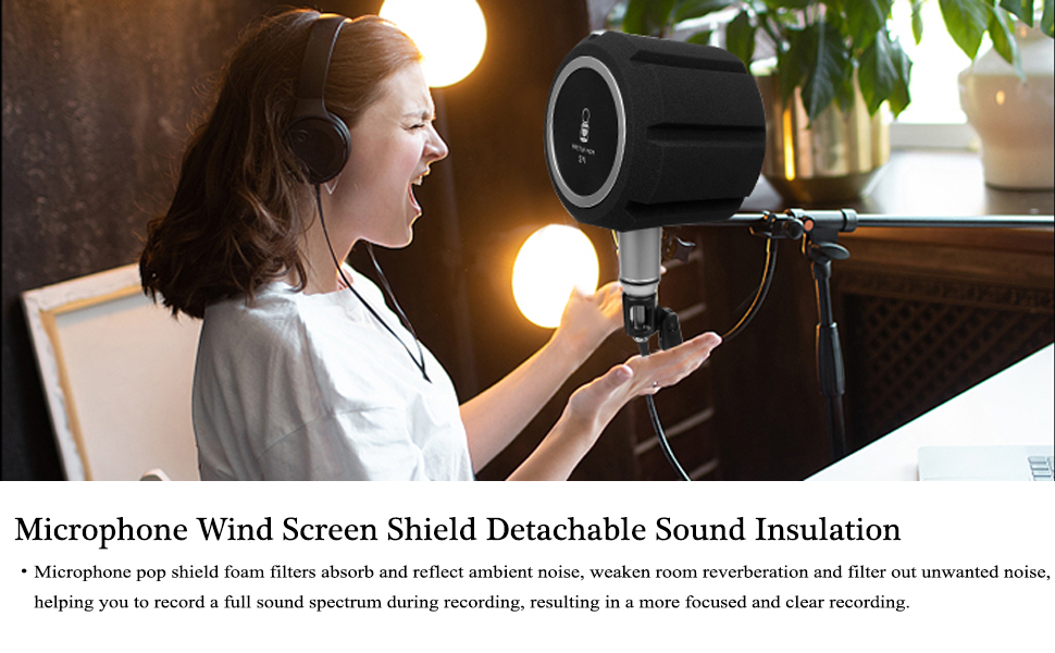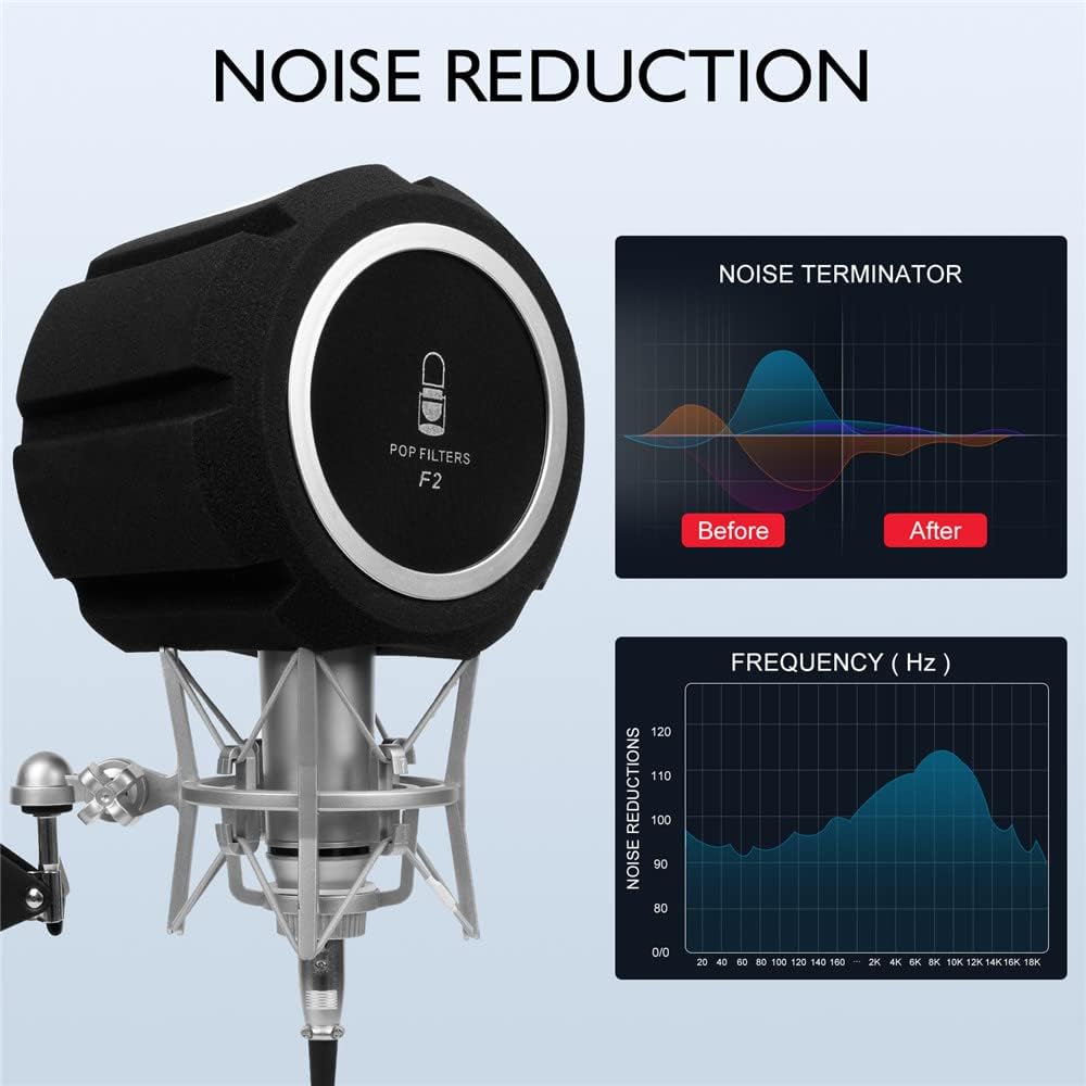 【فلتر بوب لإلغاء الضوضاء】 يمكن لفلتر بوب عزل الميكروفون أن يمتص ويعكس الضوضاء المحيطة من خلال إسفنجة تقليل الضوضاء، والتي يمكنها عزل الميكروفون في مساحة تسجيل هادئة.
