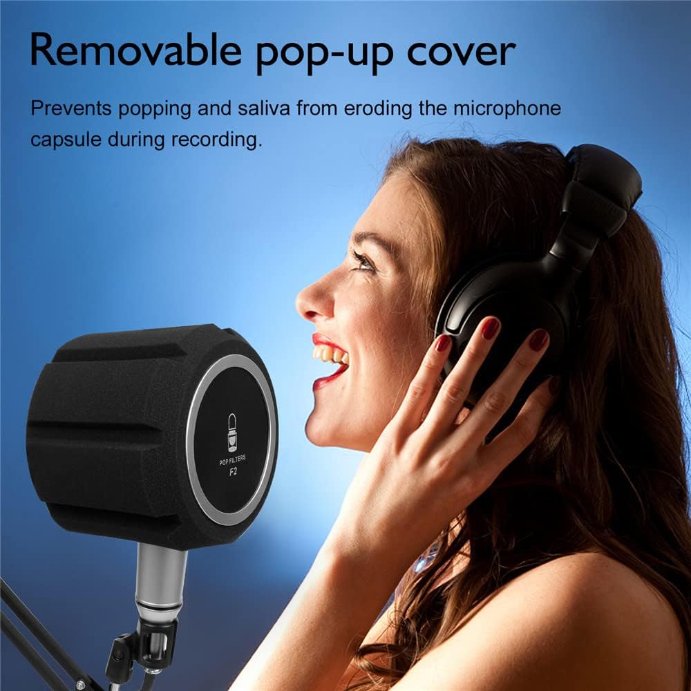【سهلة التركيب】 يمكن تركيب غطاء إسفنجي ممتص للصوت لفلتر الميكروفون بسرعة وسهولة. يحتوي الجزء الأمامي على غطاء منبثق قابل للإزالة لمنع الفرقعة واللعاب من تآكل كبسولة الميكروفون أثناء التسجيل.