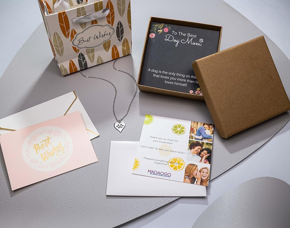 مجموعة هدايا القلادة لمحبي الكلاب: صندوق هدايا، وحقيبة هدايا، وقماش تلميع، وبطاقة رسائل، ومظروف، وحقيبة مجوهرات وحقيبة بسحاب معبأة بأمان في العبوة، ويمكنك استخدام قماش تلميع الفضة للحفاظ على لمعان القلادة كأنها جديدة. فقط اكتب الكلمات الموجودة على بطاقة الرسالة لها وأظهر لها مدى حبك لها. كلماتك ستجعل هذه الهدية ذات معنى أكبر.
