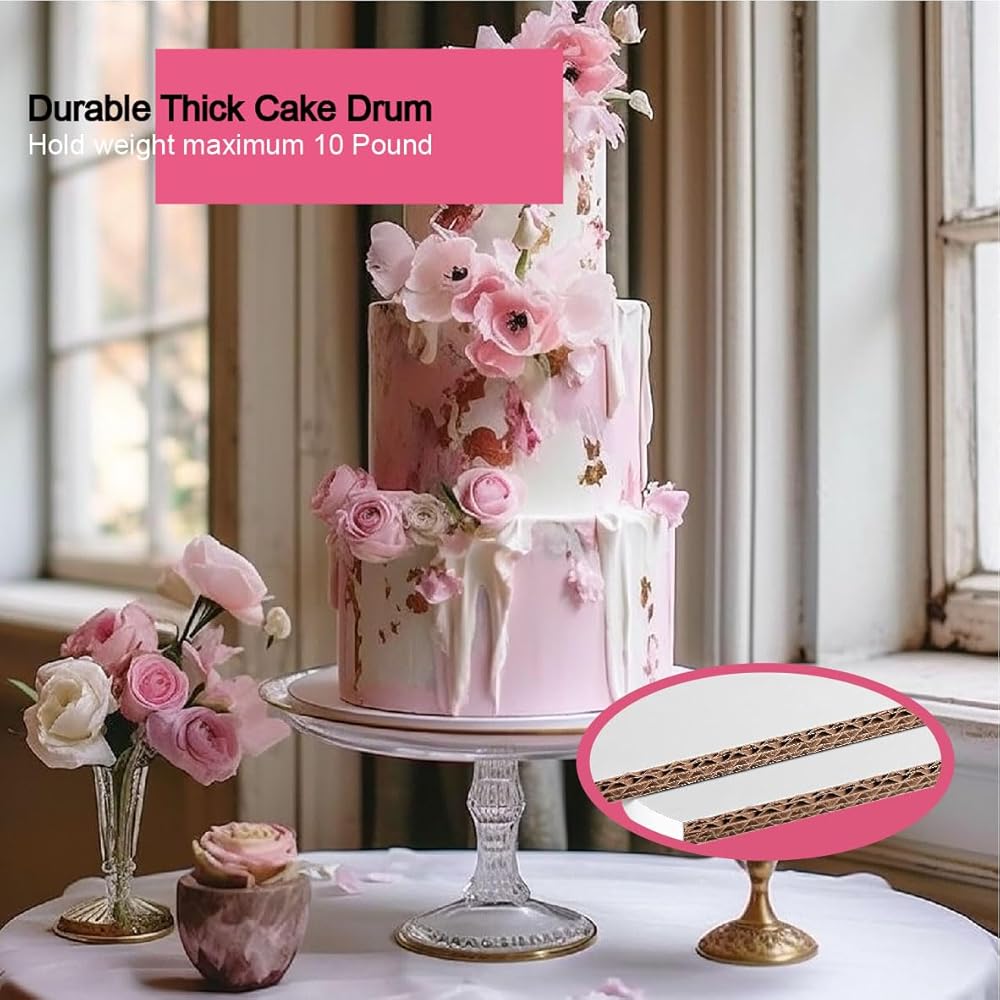 ANSSDO براميل كعكة مستديرة مقاس 12 بوصة، 3 عبوات من قاعدة كعكة طبل الكيك البيضاء المقاومة للدهون، ألواح كيك من الورق المقوى لتقديم الكعك ذو الطبقات الثقيلة/الطويلة، قاعدة الفقرة باستيل
